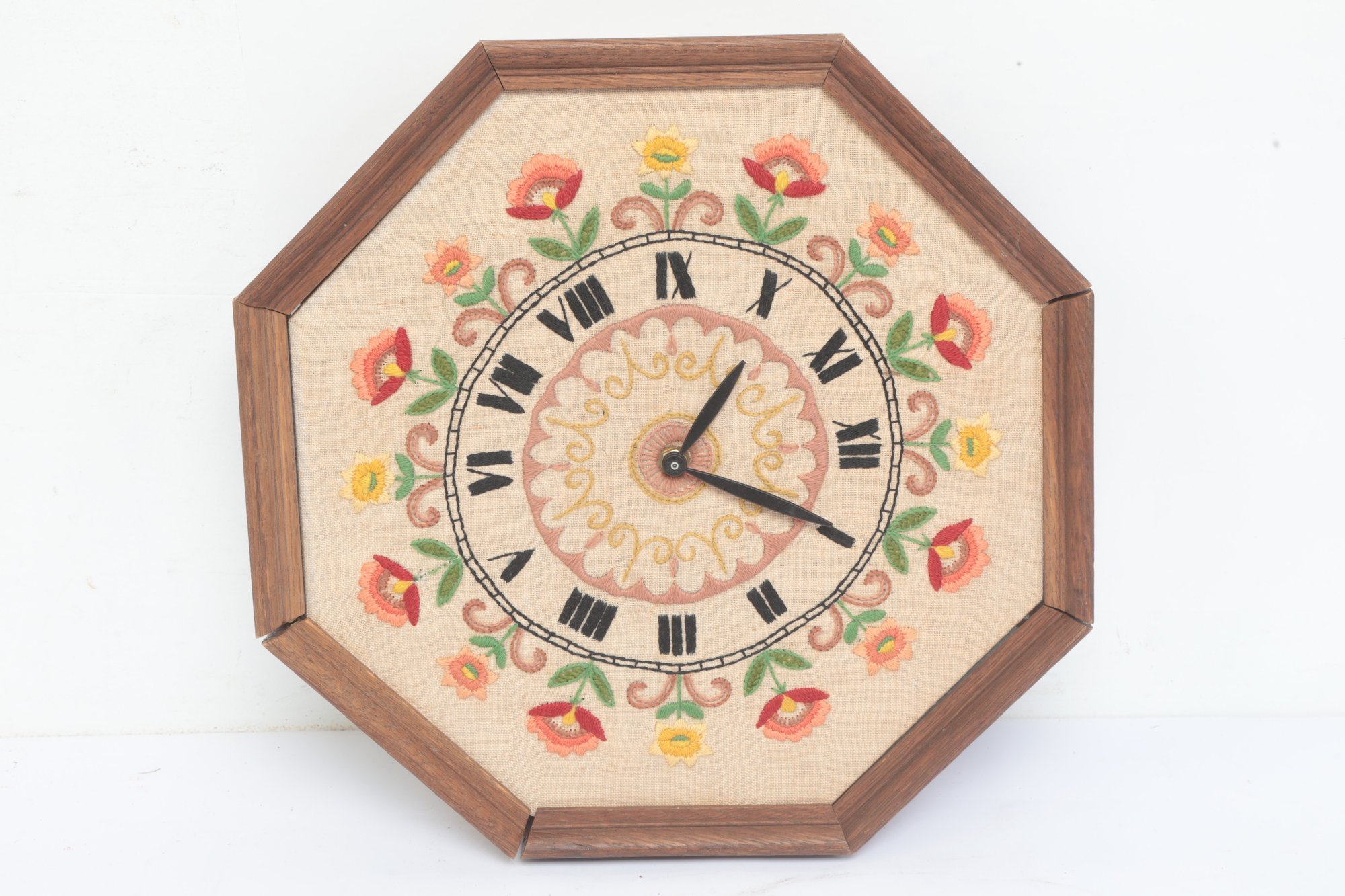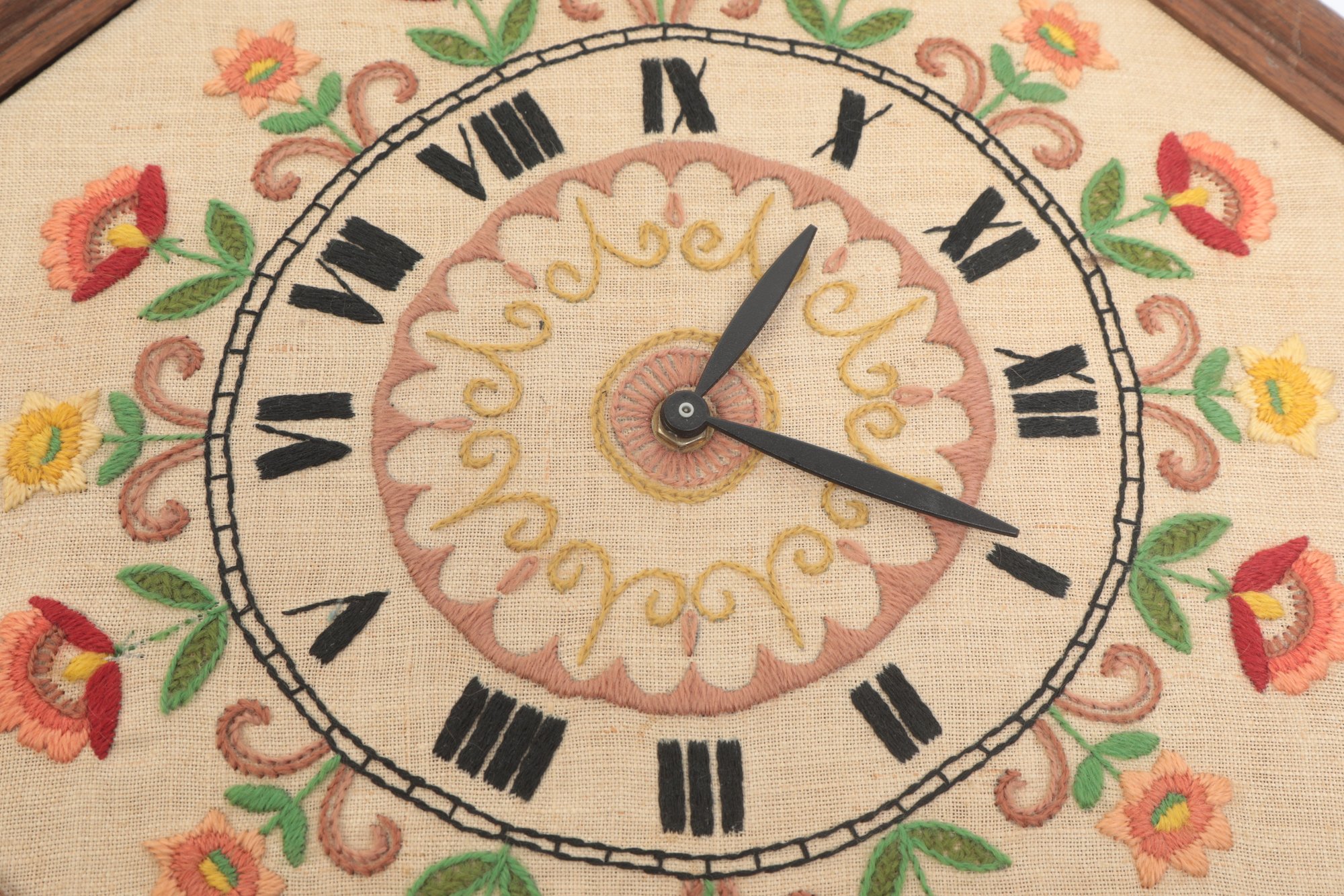 Vintage Embroidered Wall Clock untested sold as is. See pictures carefully for details on size and condition.