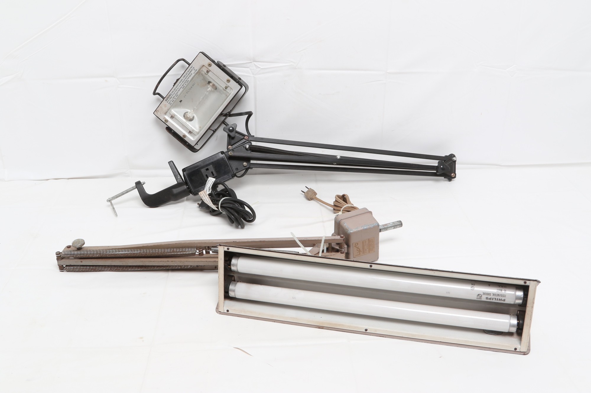 Vintage Floating Clamp On Drafting Lamp Plus Other Lamp