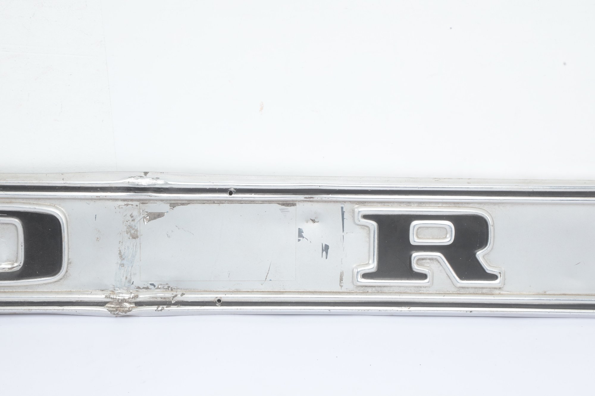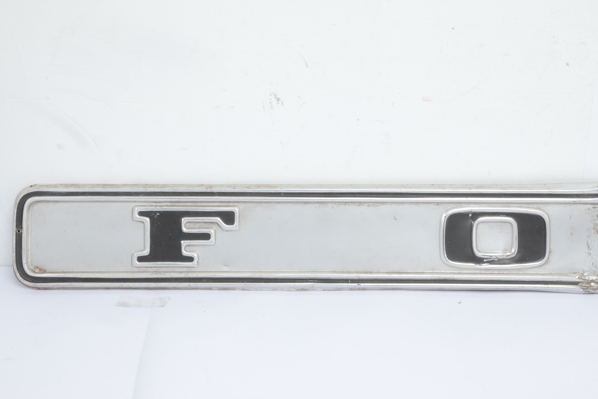 Vintage Ford Truck Tailgate Finish Panel Molding, likely from a 1968-1972 F-series model. Has wear and damage consistent with age and use. See pictures carefully for details on size and condition.