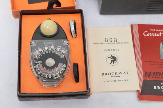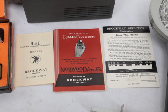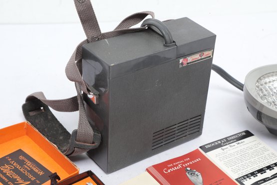 Vintage General Electric Cinema Light Spotlight, Sony F-98 Microphone And Brockway Exposure Meter. All items are untested, sold as is. See pictures carefully for details on contents included with lot and condition