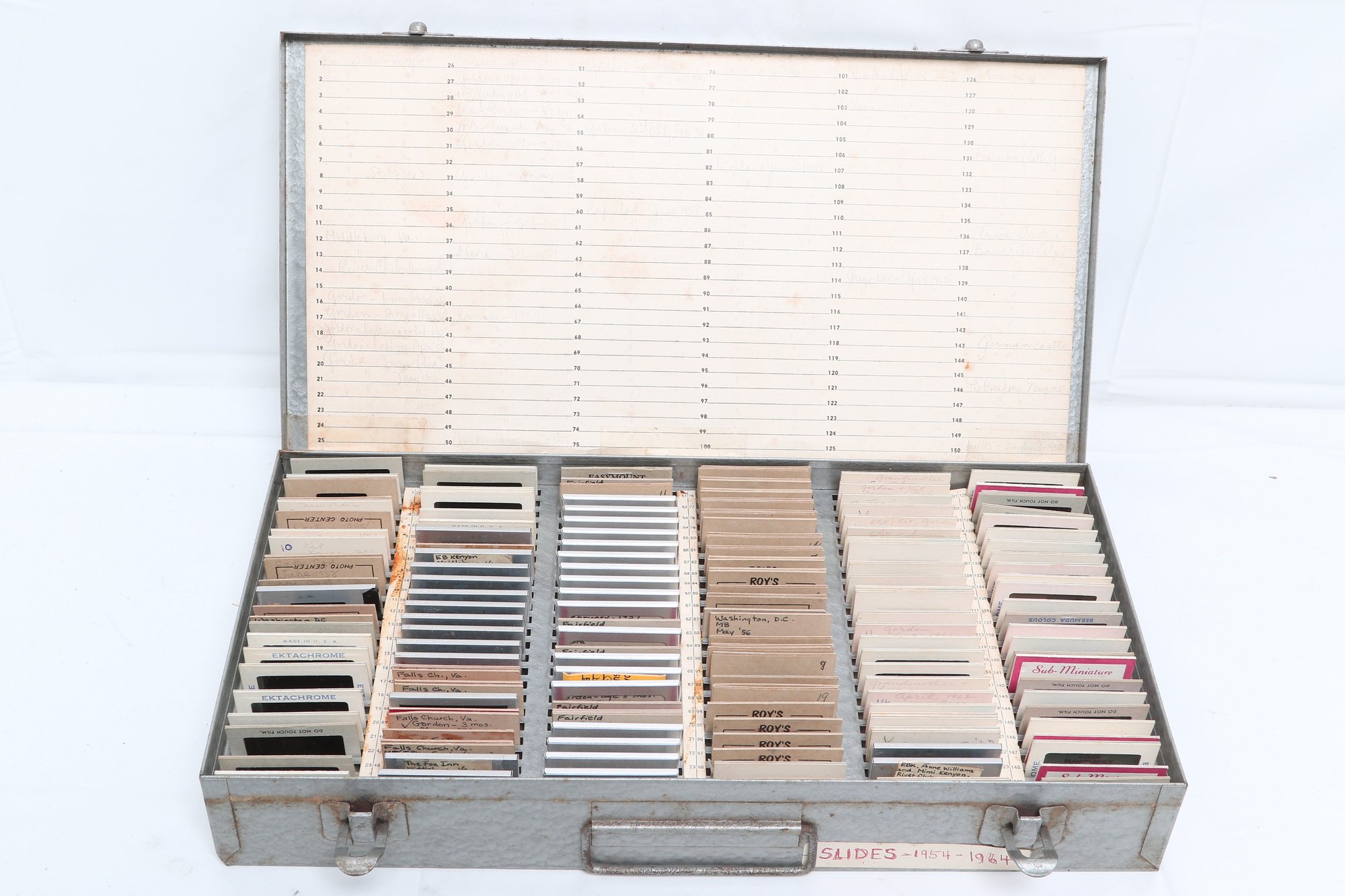 Vintage Metal Slide Storage Case Filled With 35mm Photo Slides From 1950's