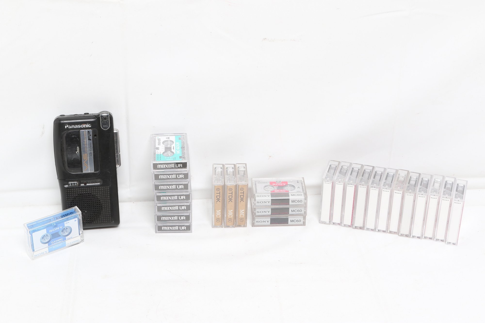 Vintage Panasonic Mini Cassette Recorder W/ Large Grouping Of Blank Cassettes