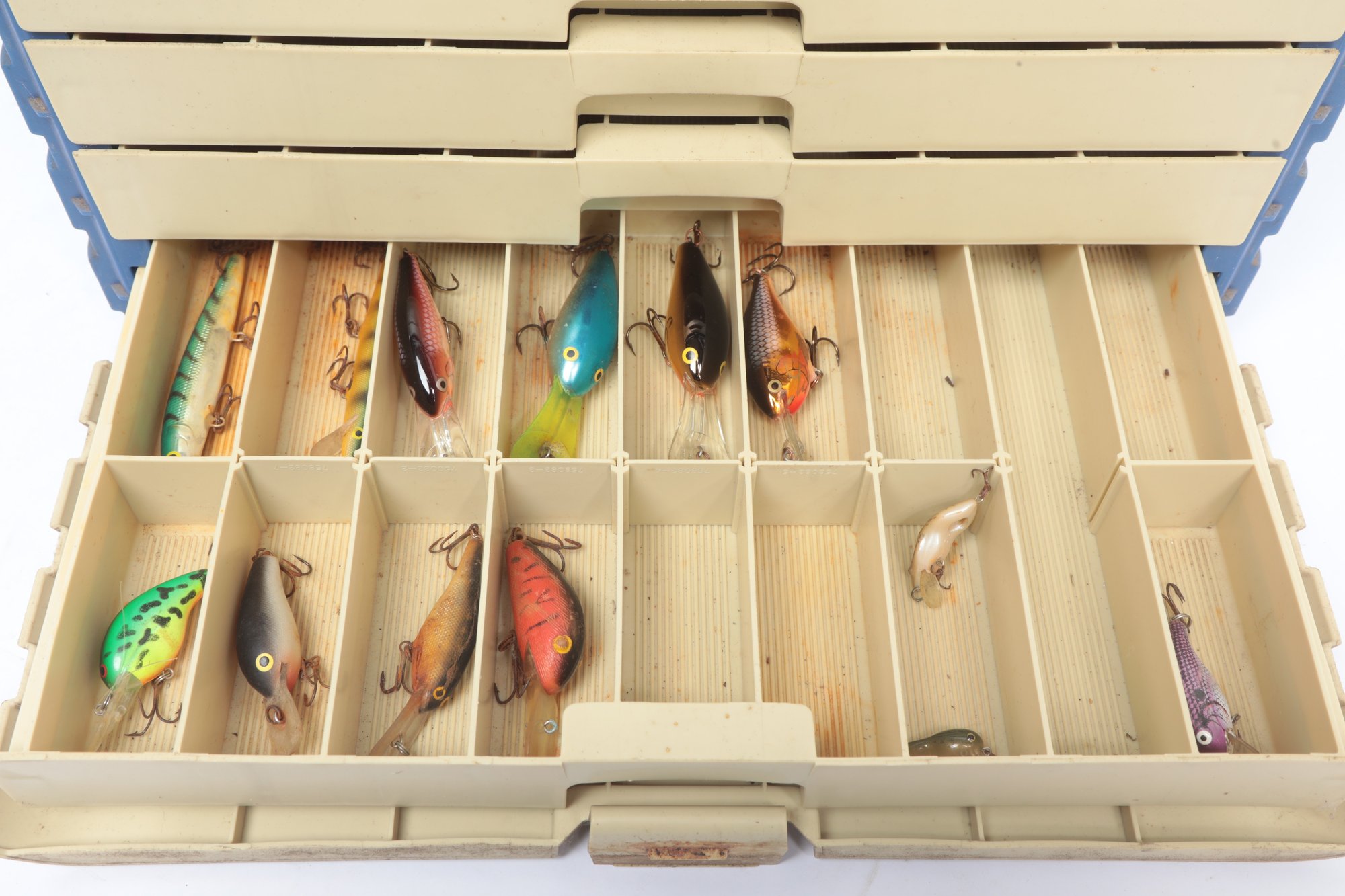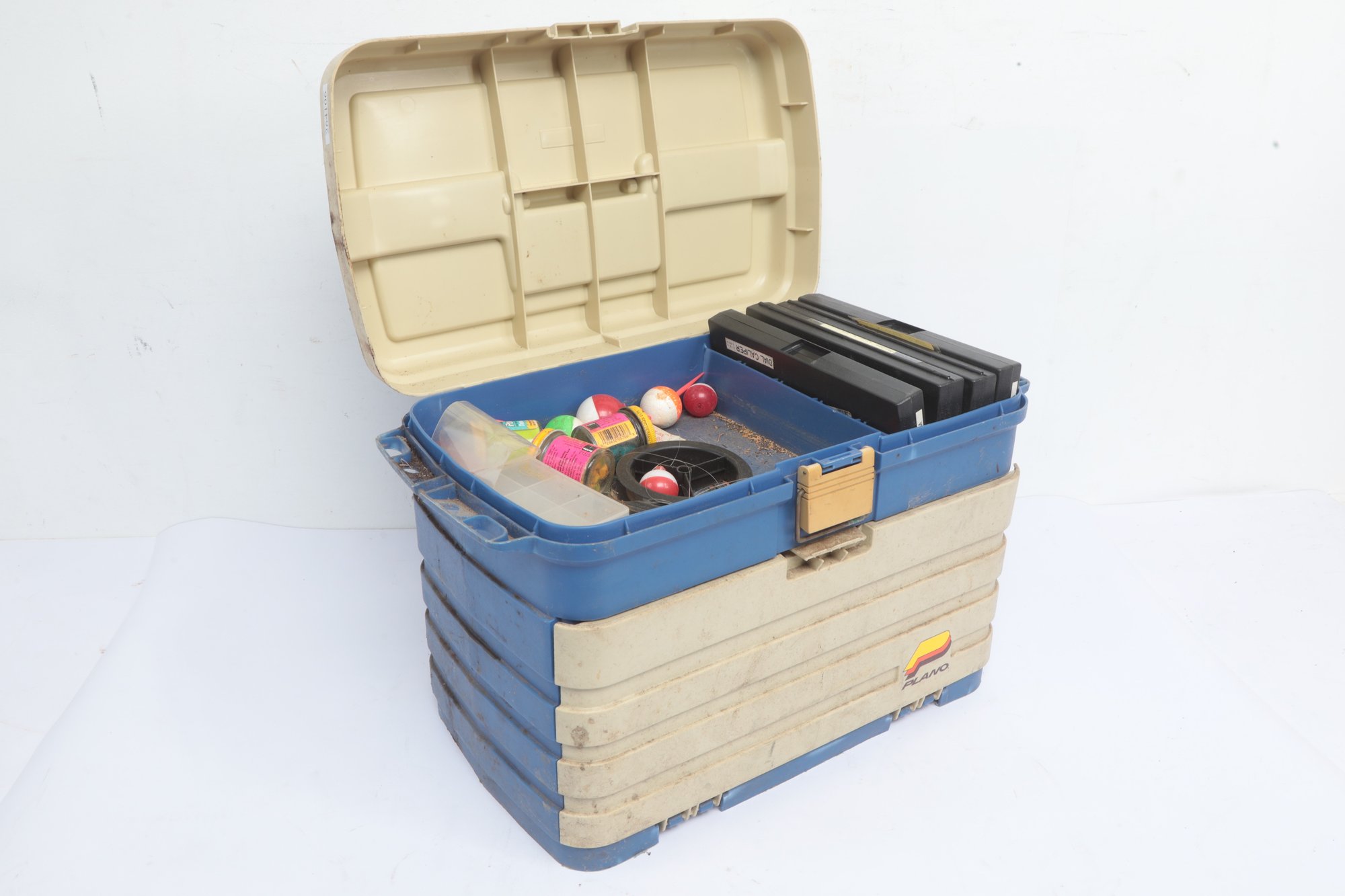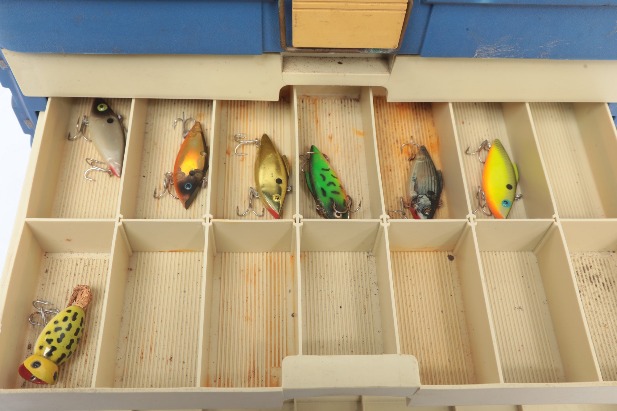 Vintage Plano 4 Drawer Tackle Box W/ Accessories And Lures. Tackle box could use cleaning, see pictures carefully for details on contents and condition.