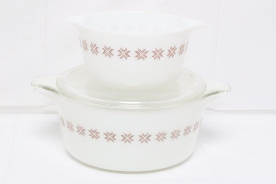 Vintage Pyrex Town & Country Cross Stitch Star Two Casseroles One With Lid