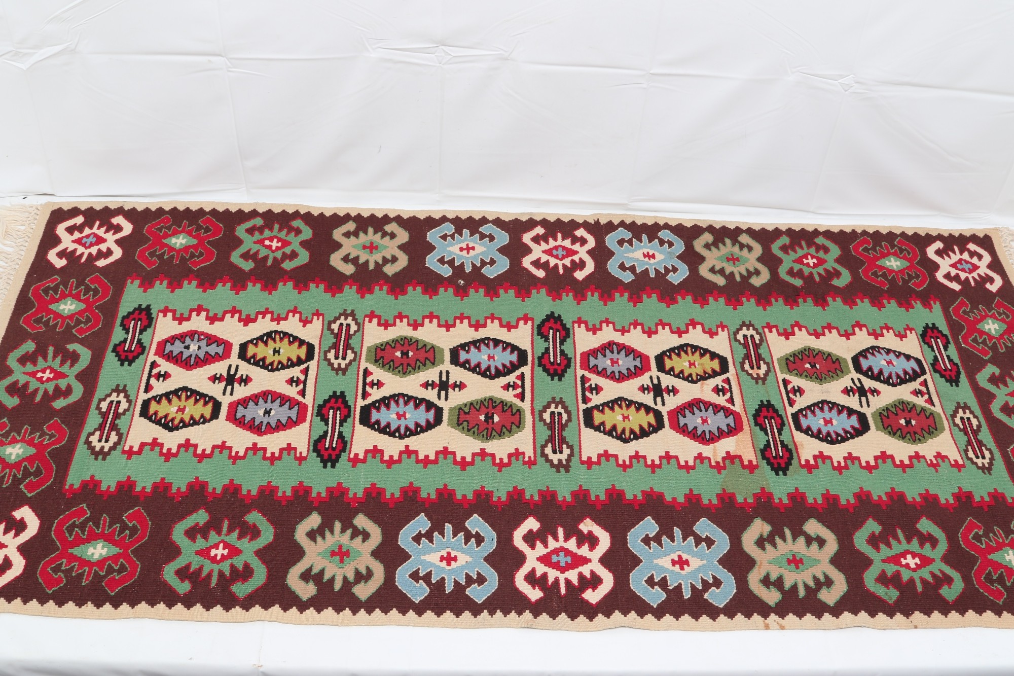 Vintage Sarkoy Kilim Handmade Rug 4'6" X 2'3"