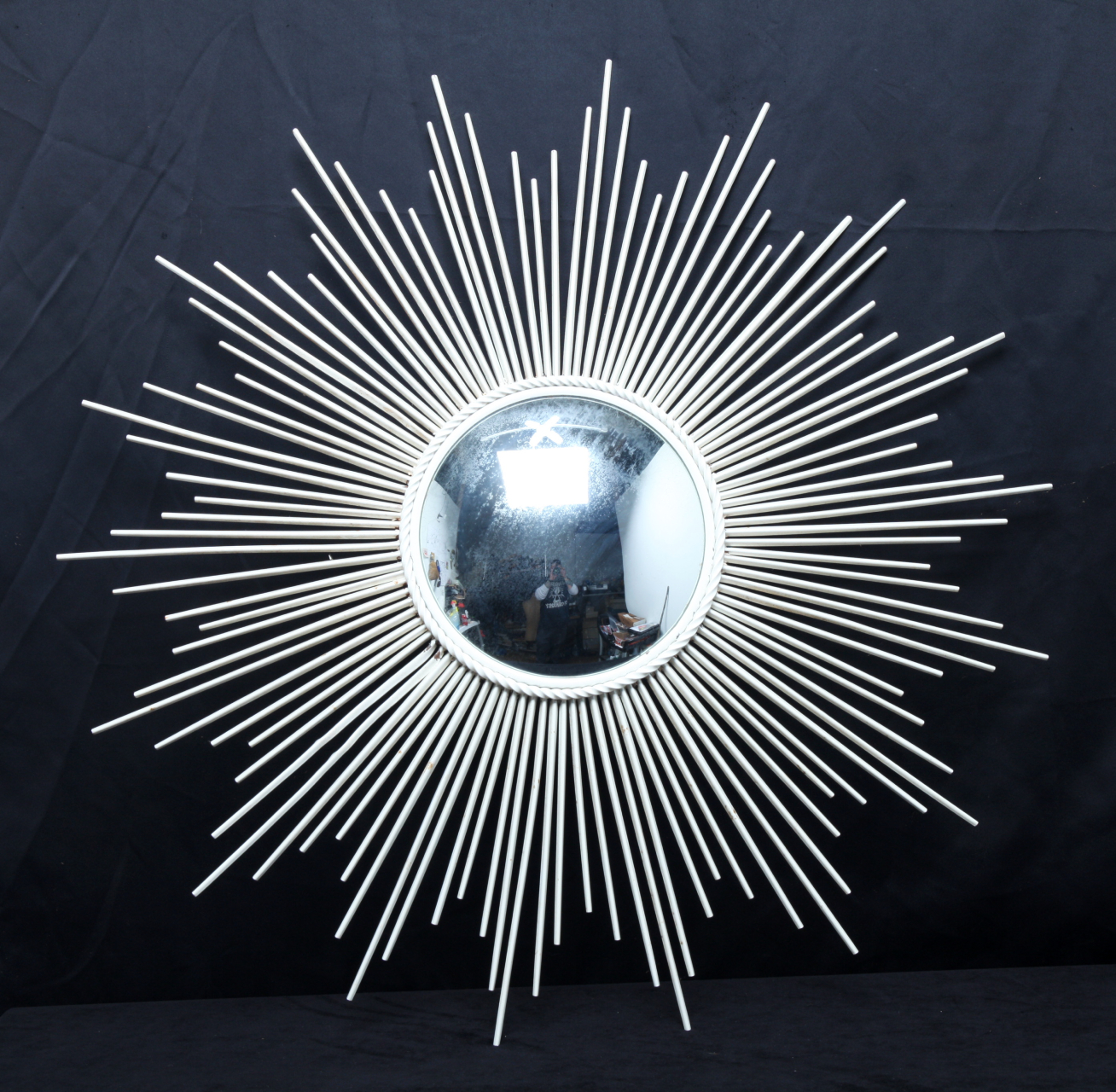 In good vintage condition. The framing of the mirror is metal is white.
