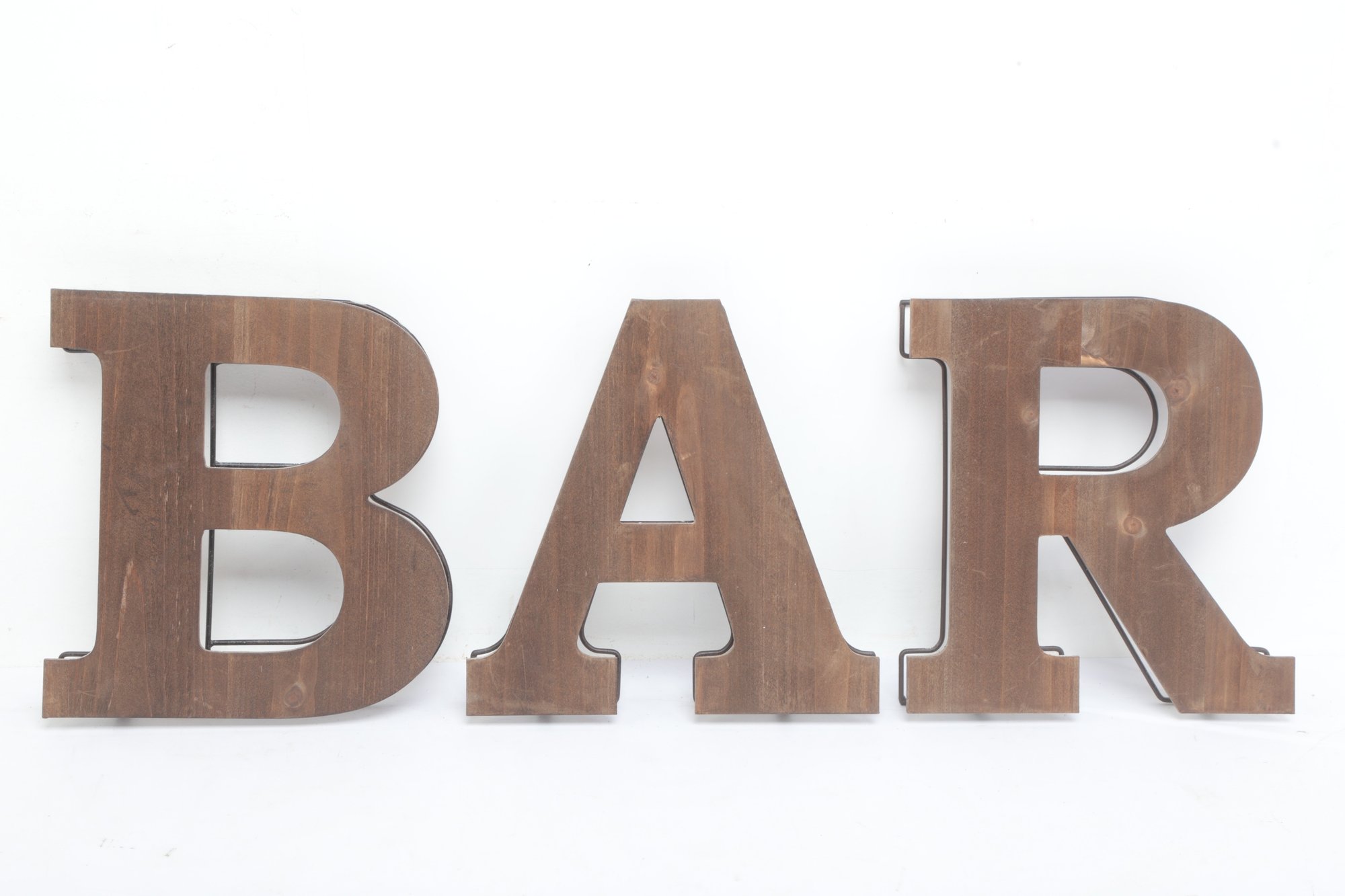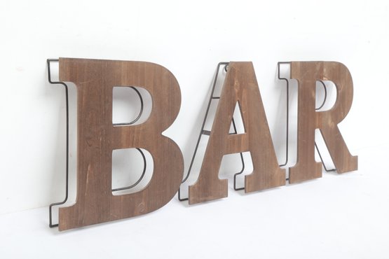 Wood And Metal Wall Hanging Bar Letters. See pictures carefully for details on size and condition.
