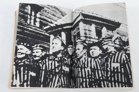 Printed in Poland, 1961. Illustrated. Dust jacket over printed stiff wrappers. Multi-lingual book documenting through stark graphic imagery the unimaginable horrors of Nazi extermination policies, 160 p. View all photos FOR CONDITION before bidding.