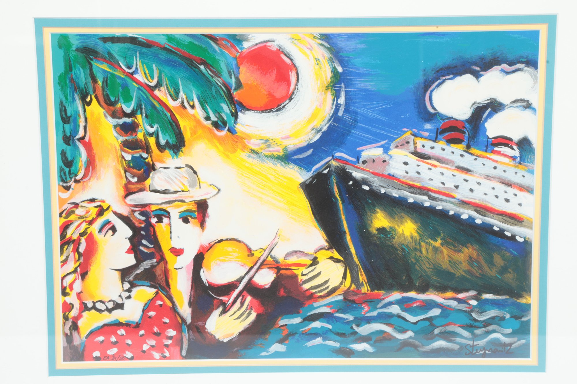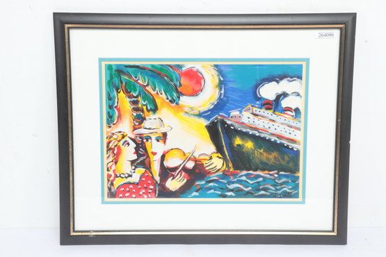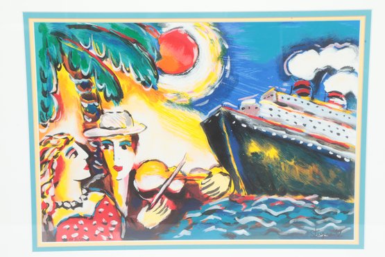 Zamy Steynovitz "Tropical Paradise" Framed Serigraph 20" x 21" with frame. See pictures carefully for details on size and condition of piece.