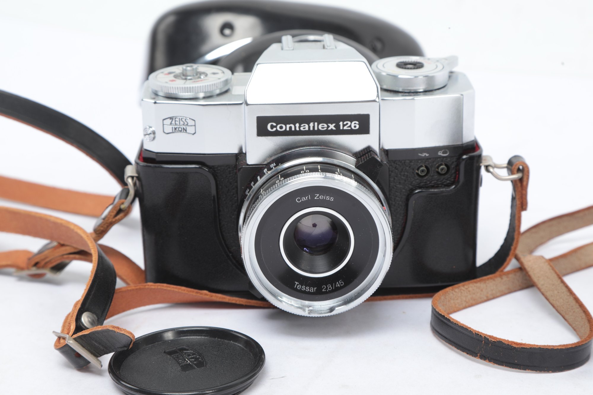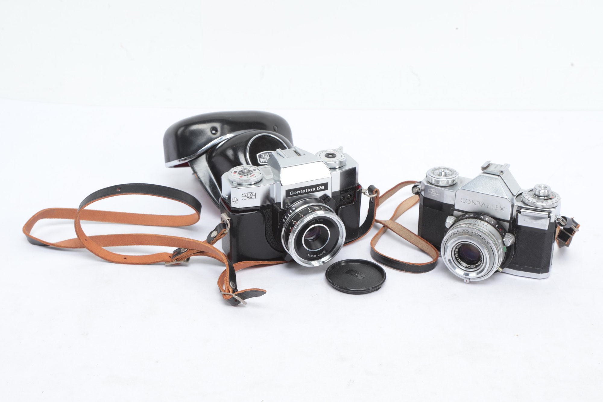 Zeiss Ikon Contaflex And Contaflex 126 Cameras. Cameras are untested sold as is, see pictures carefully for details on contents included and condition.