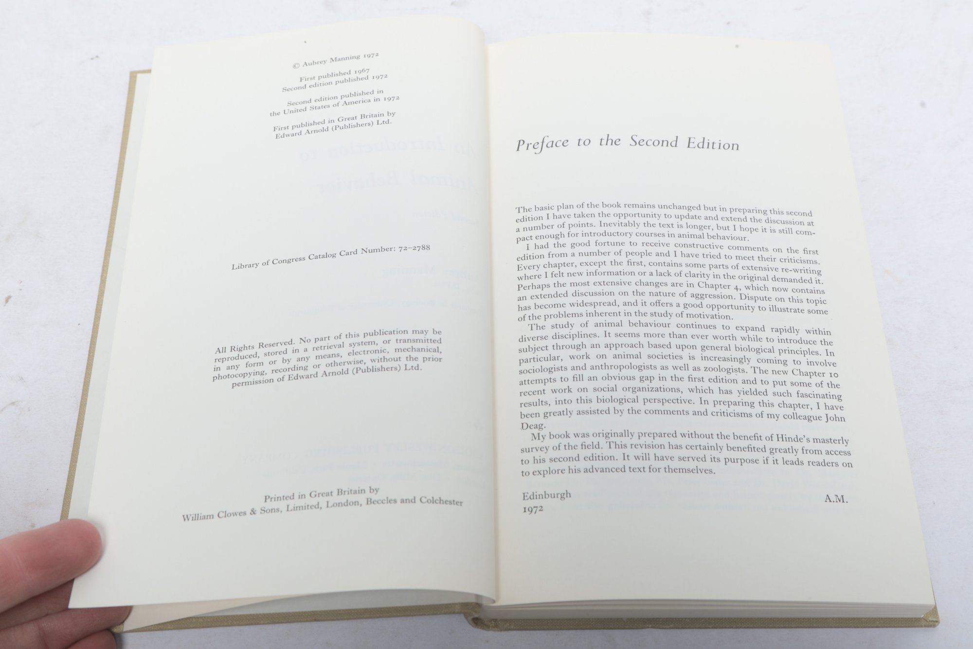 Reading, MA: Addison-Wesley Publishing Company, 1972. Second edition hardcover in cloth binding. Includes original diagrams and scholarly text by Aubrey Manning of the University of Edinburgh. Binding appears clean and tight. Text block is bright with no visible markings.