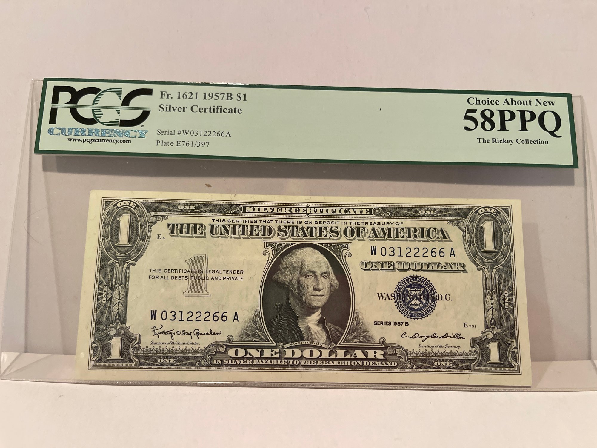 $1 1957-B Silver Fr. 1621 grade PCGS 58 PPQ