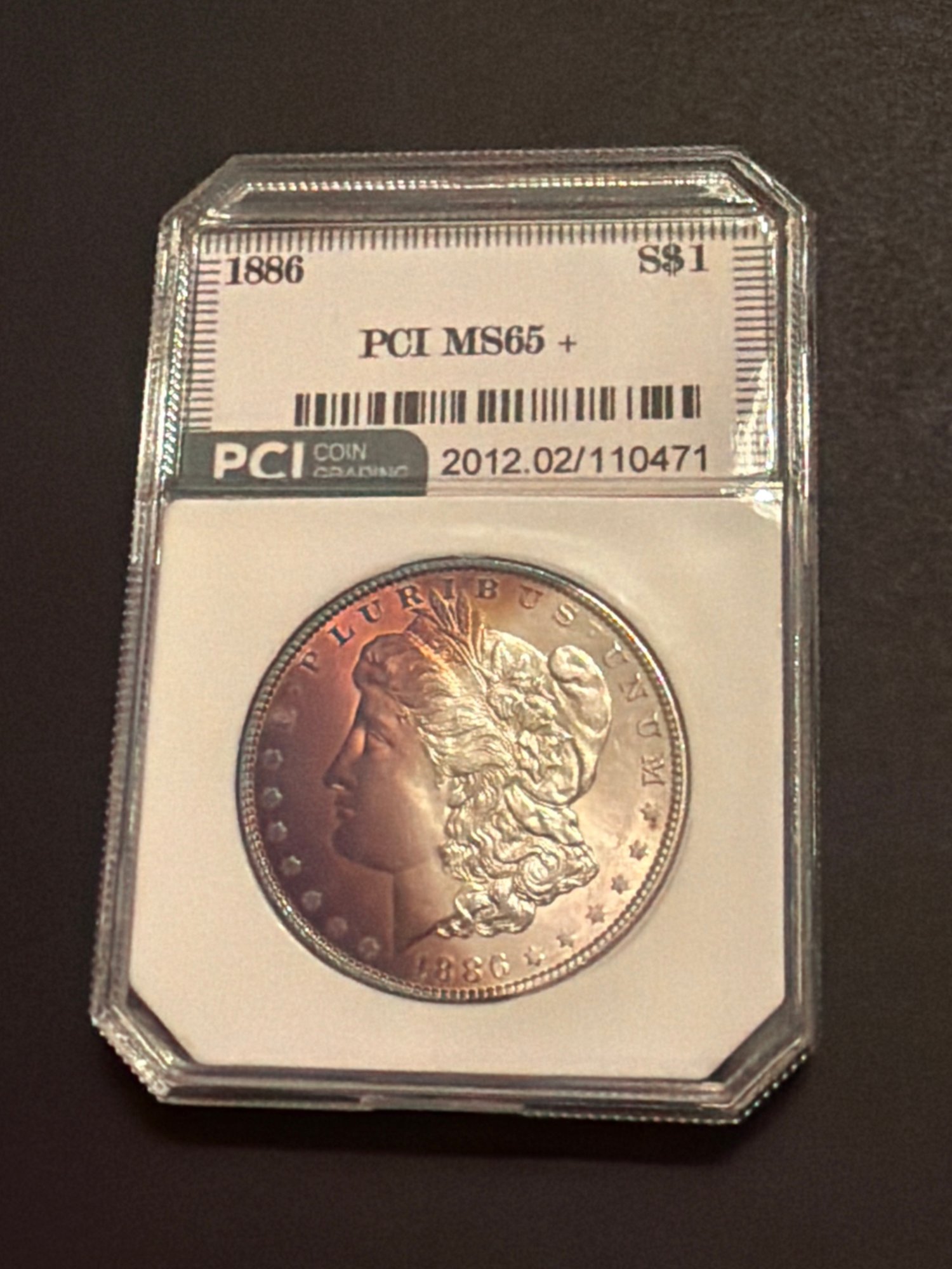 The coin has been graded, but What's In The Box does not recognize PCI as a reputable grading company. For that reason, we cannot guarantee the assigned grade.