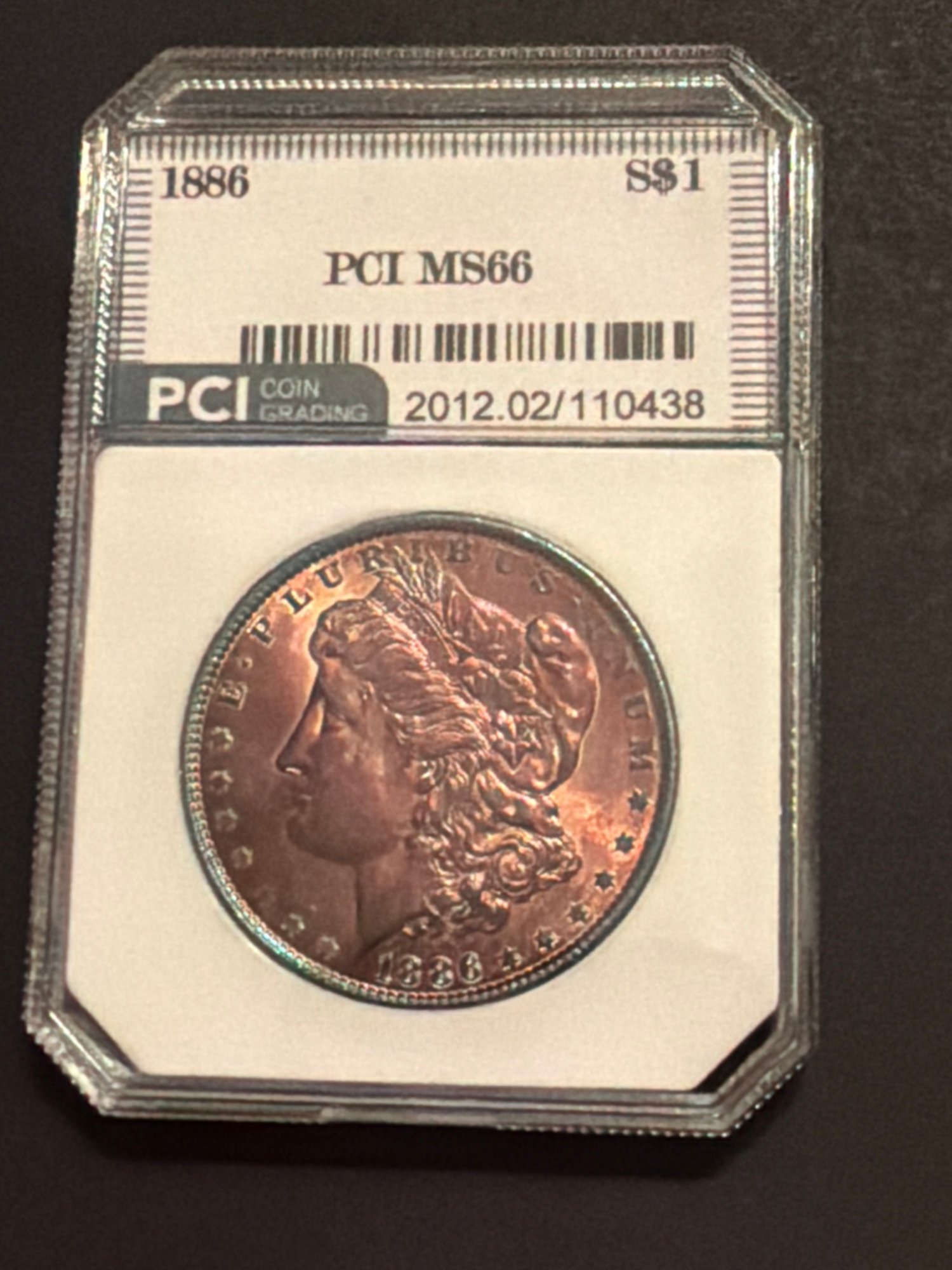 The coin has been graded, but What's In The Box does not recognize PCI as a reputable grading company. For that reason, we cannot guarantee the assigned grade.