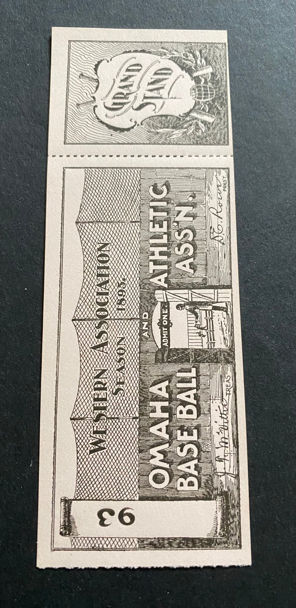 1895 Omaha Omahogs Minor League Baseball Club Western Association Full Ticket