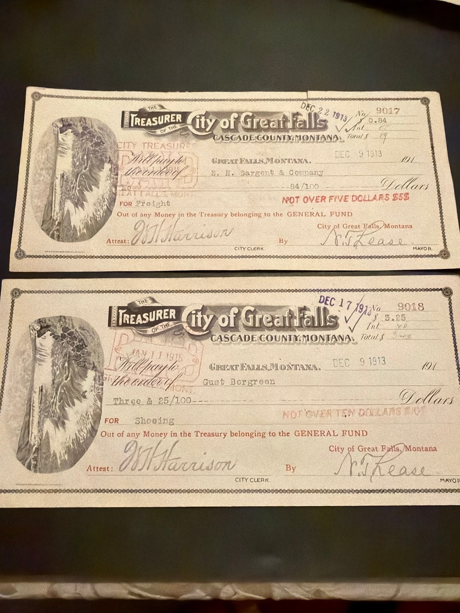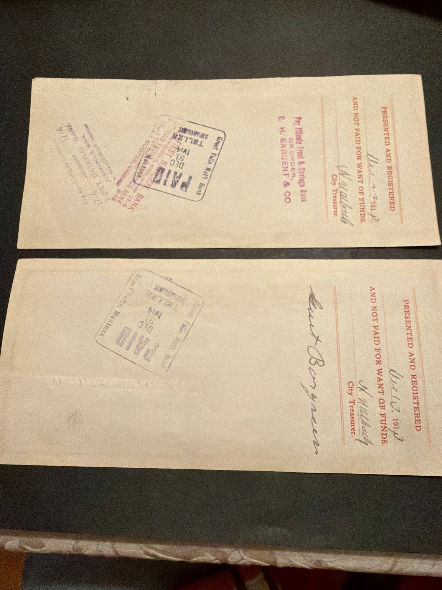 1913 Montana Treasury Note Lot Of 2