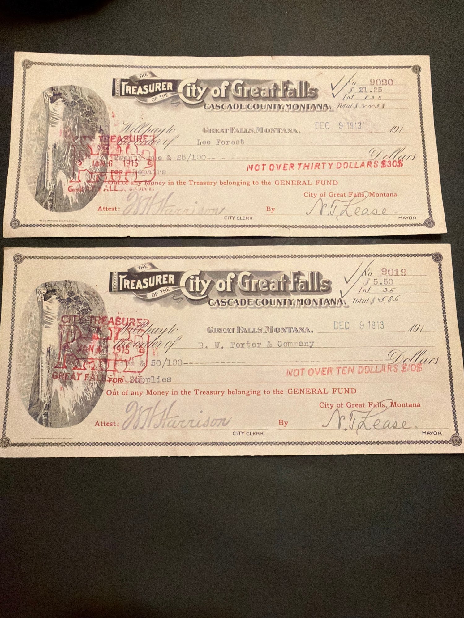 1913 Montana Treasury Note Lot Of 2