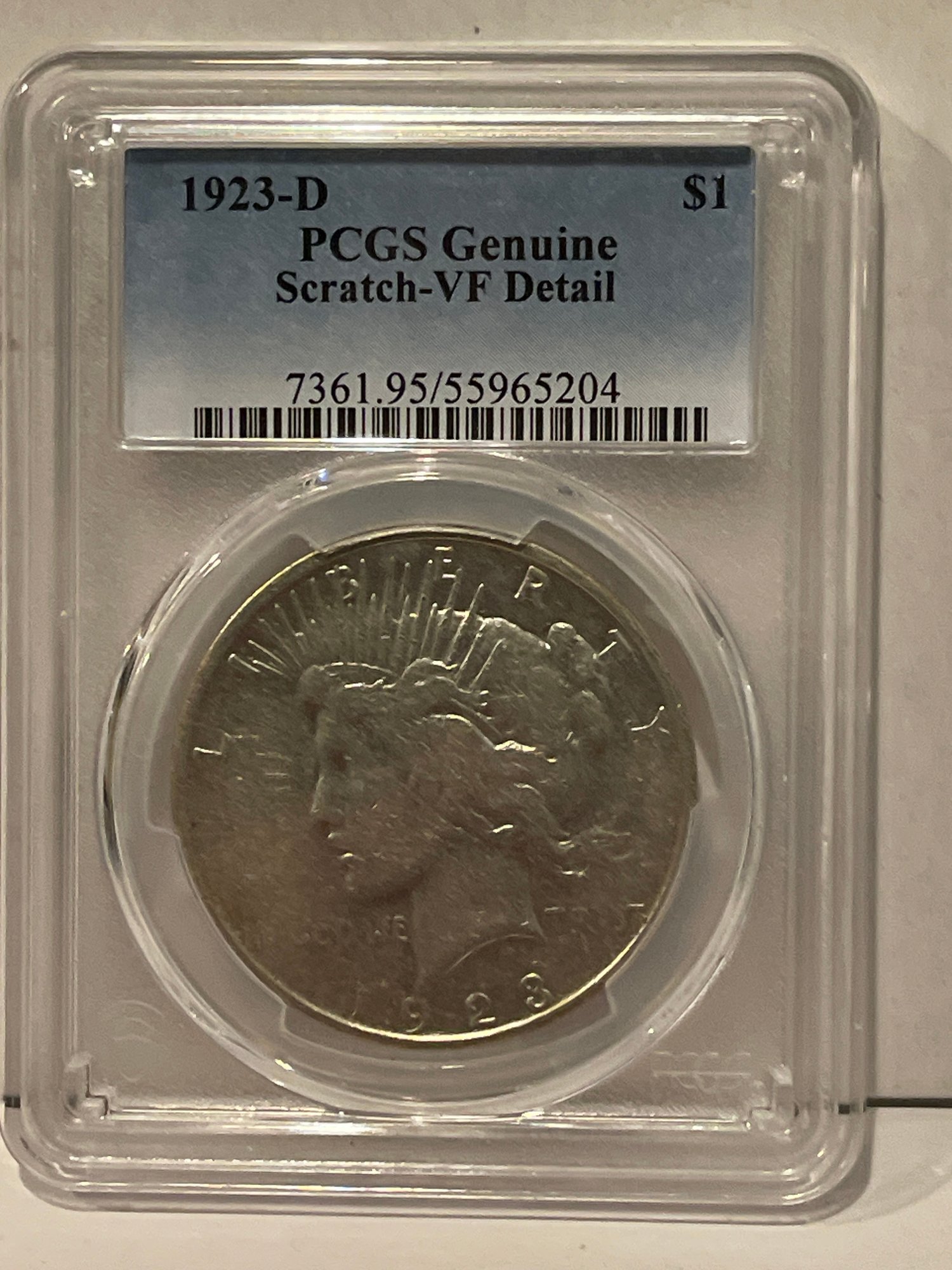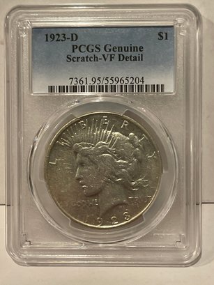 1923-D Silver Peace Dollar PCGS Scratch - VF Detail