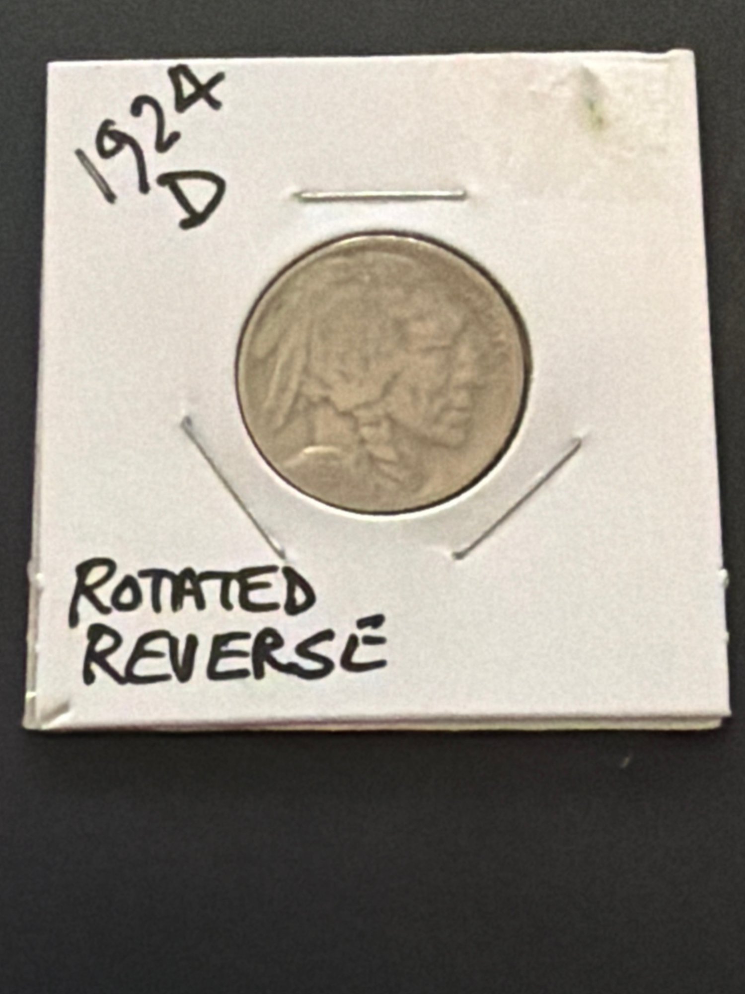 1924 D Buffalo Nickel. Rotated Reverse Error!!