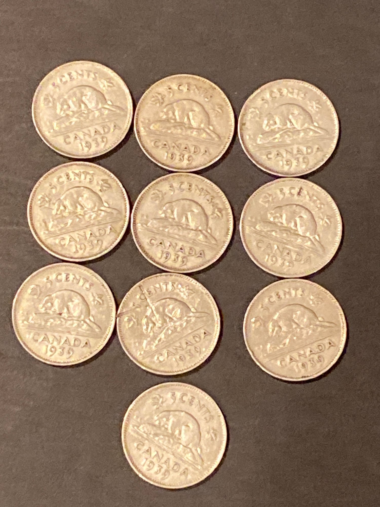 1939 Canadian Nickel Lot Of 10