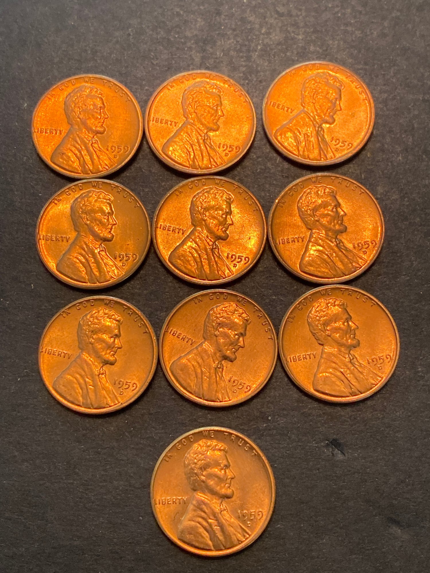 1959 D Lincoln Pennies Lot Of 10. BU