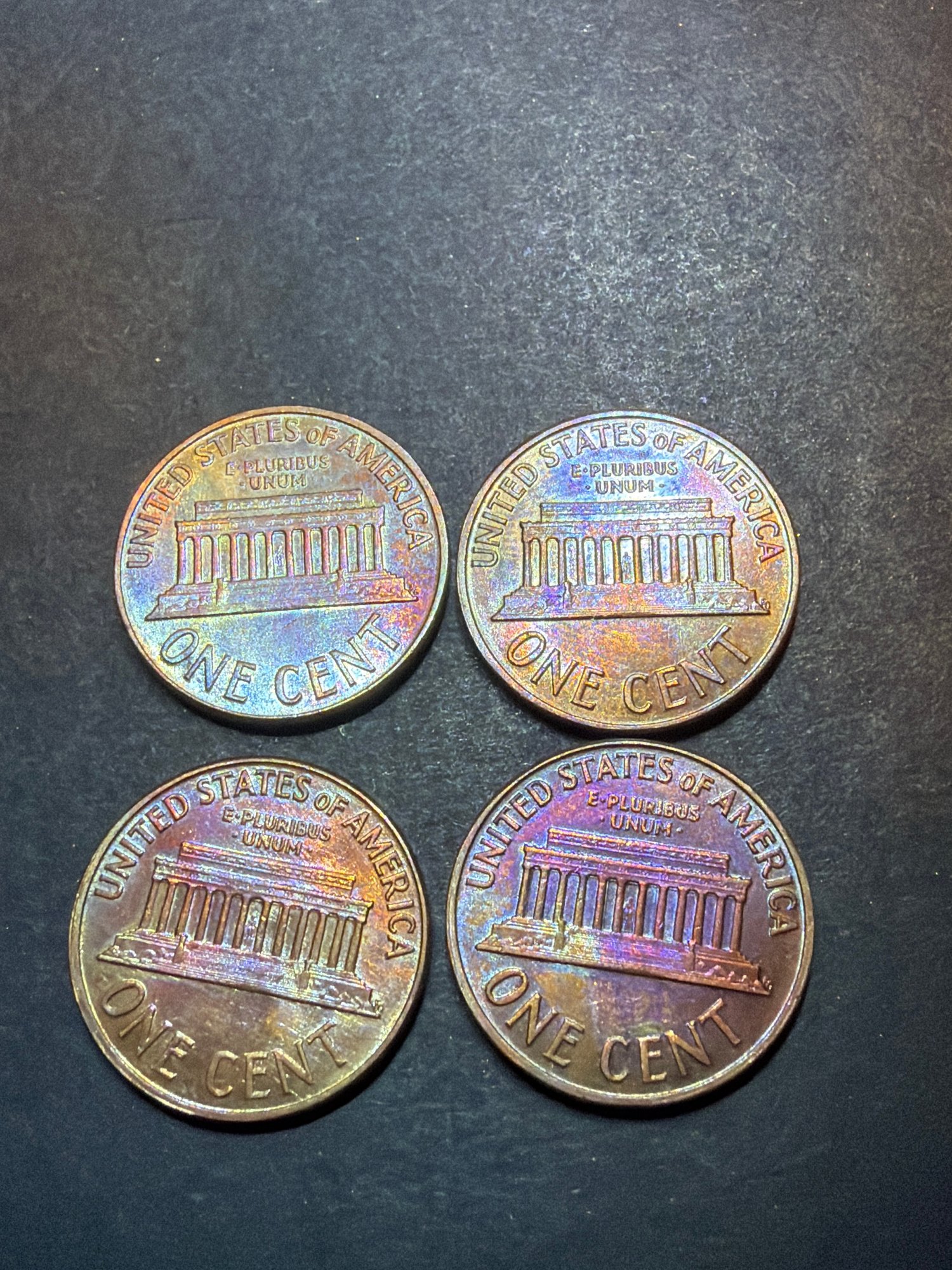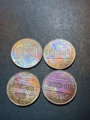 1960 D Lincoln Penny BU Lot Of 4. Rainbow Toning!