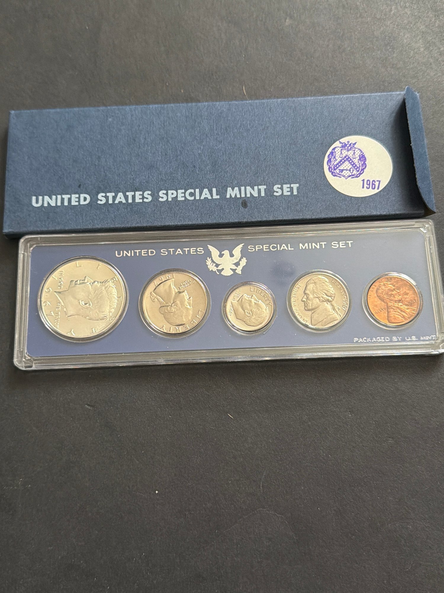 1967 UNITED STATES Special Mint Set SMS in Mint Box 5 COINS w/ Silver Kennedy