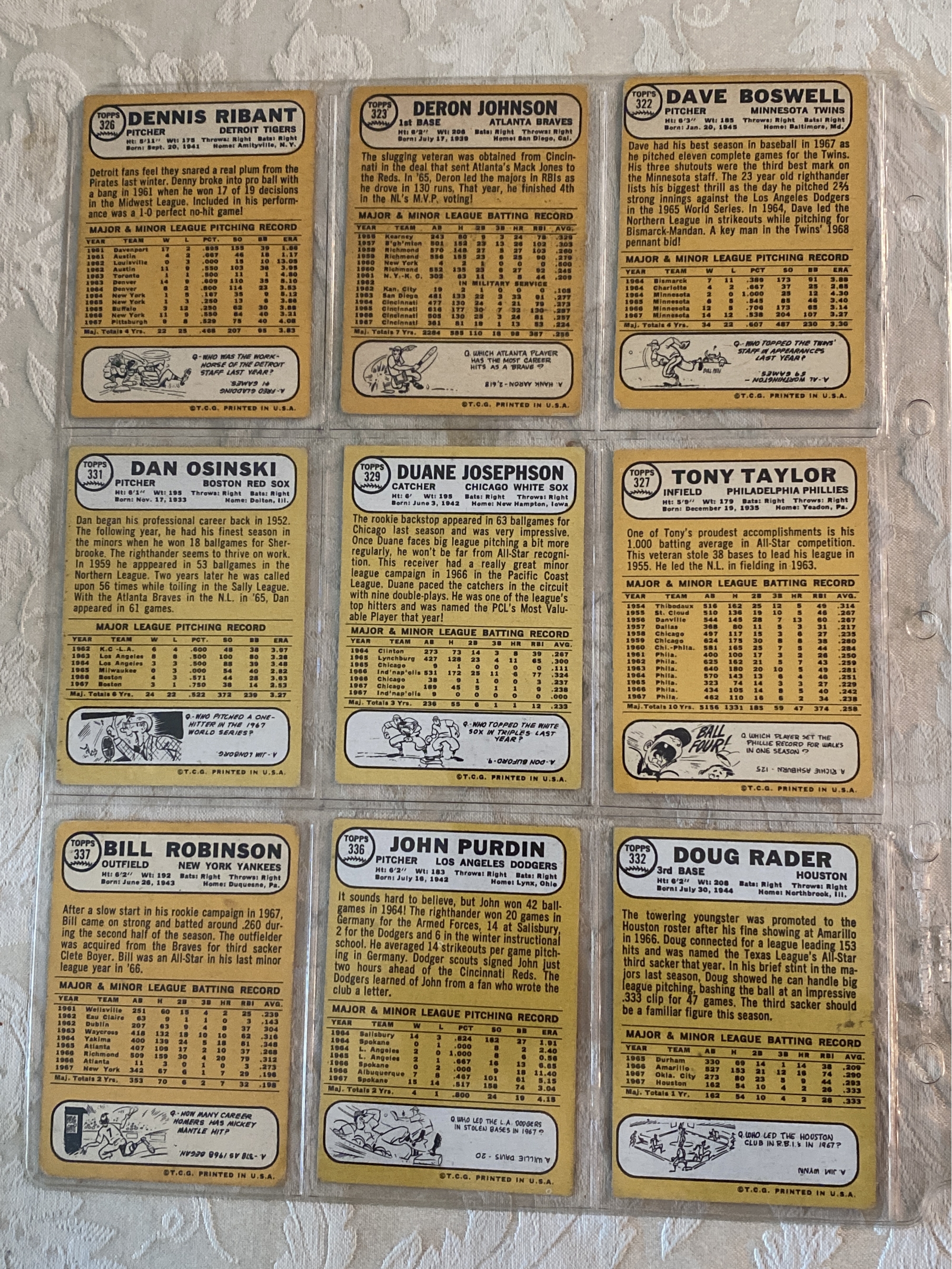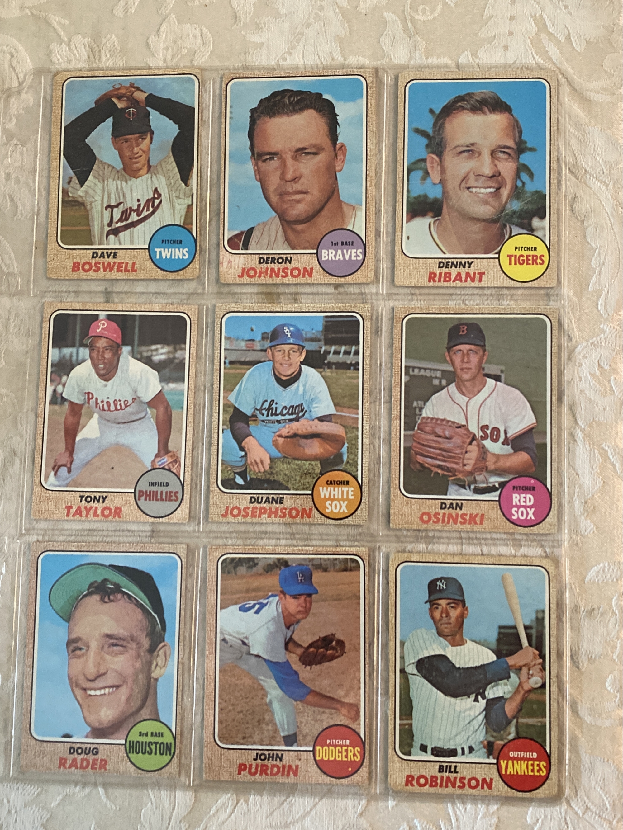 1968 Topps Baseball Card Lot Of 9.
