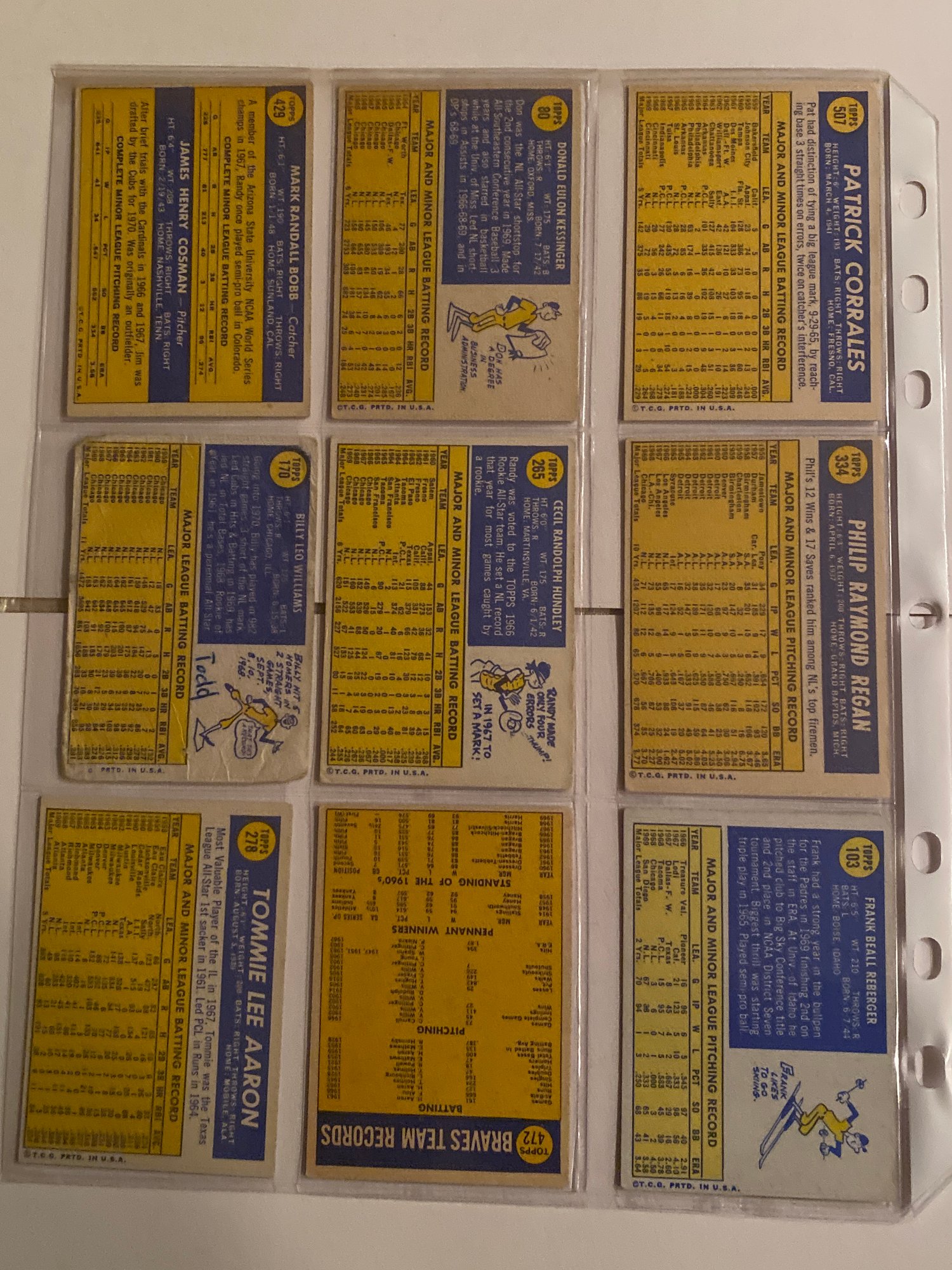 1970 Topps Baseball Card Lot Of 9