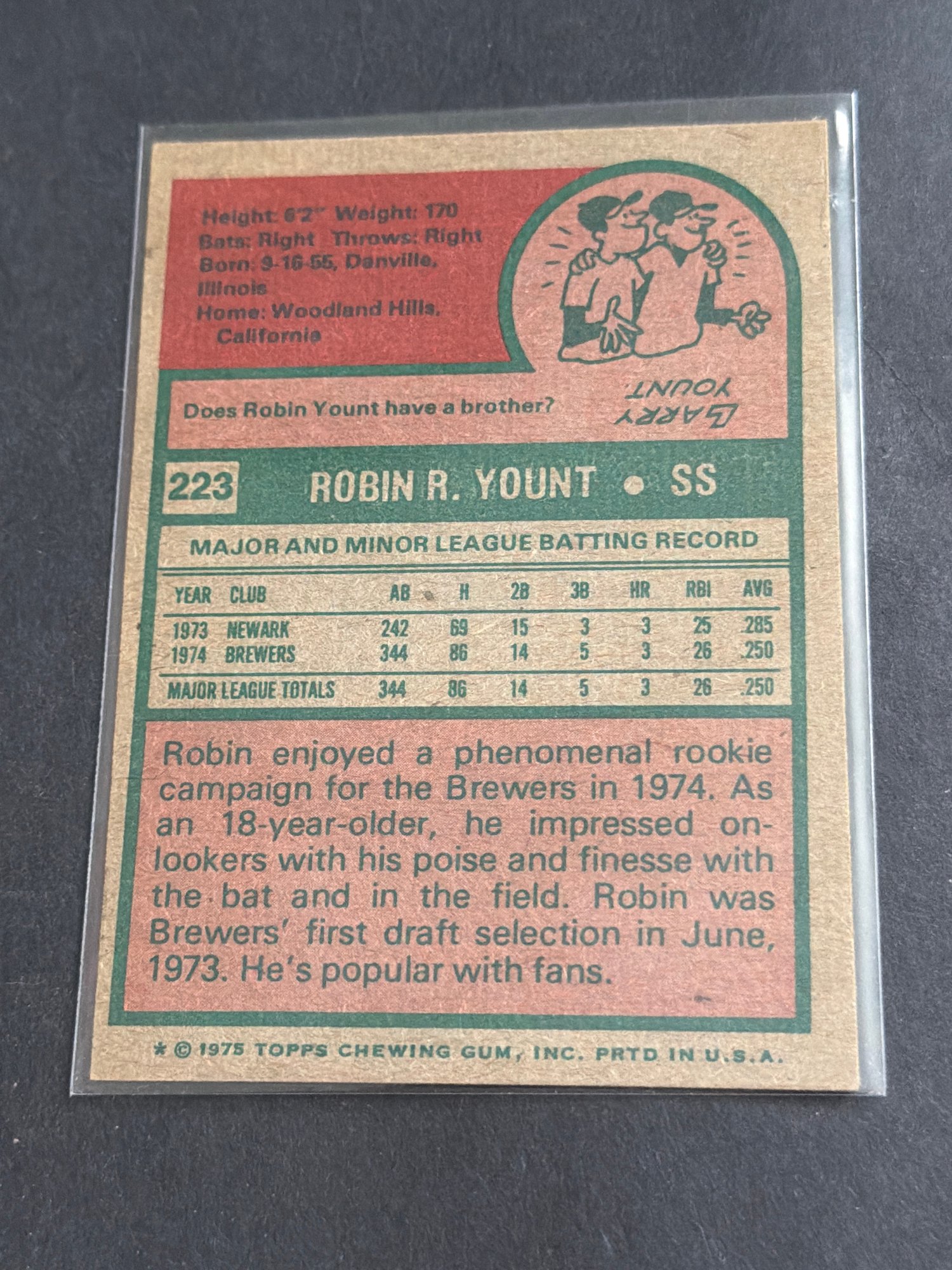 1975 Topps Baseball Card Robin Yount