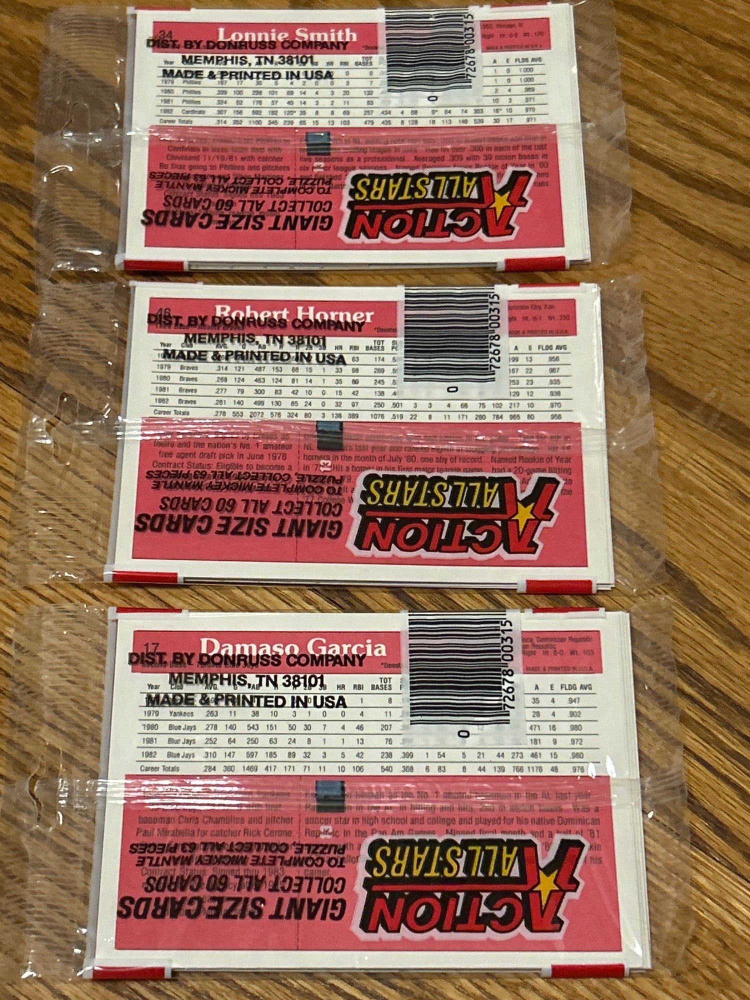 1983 Donruss Action All Stars Lot Of (3) Unopened Packs.
