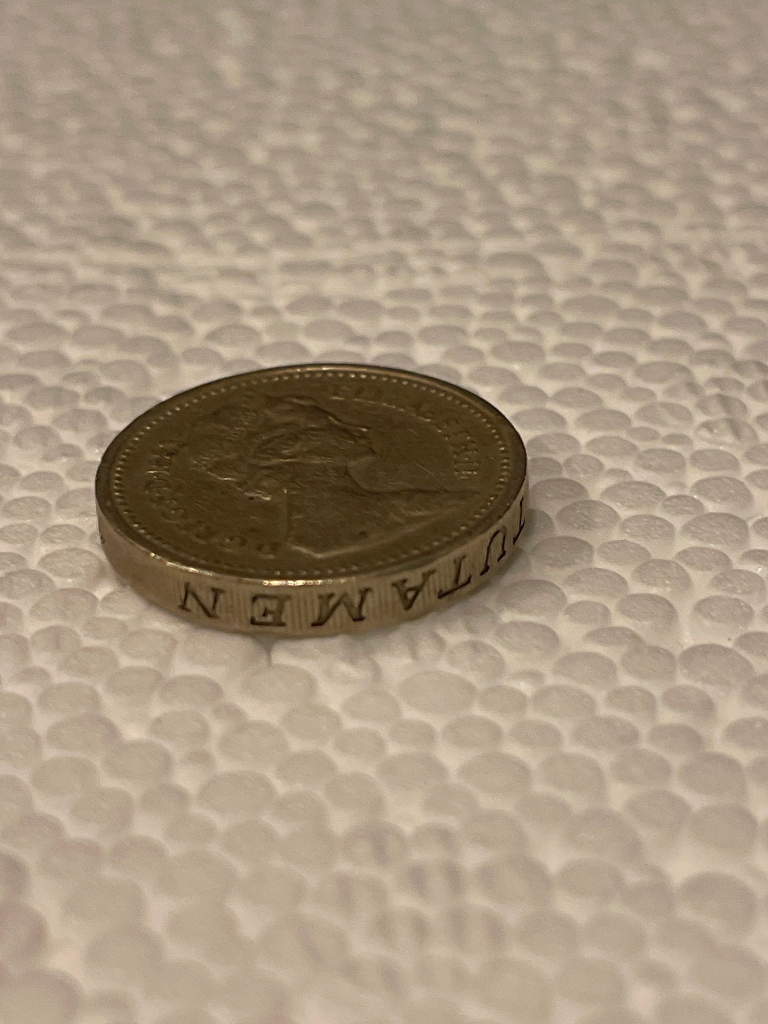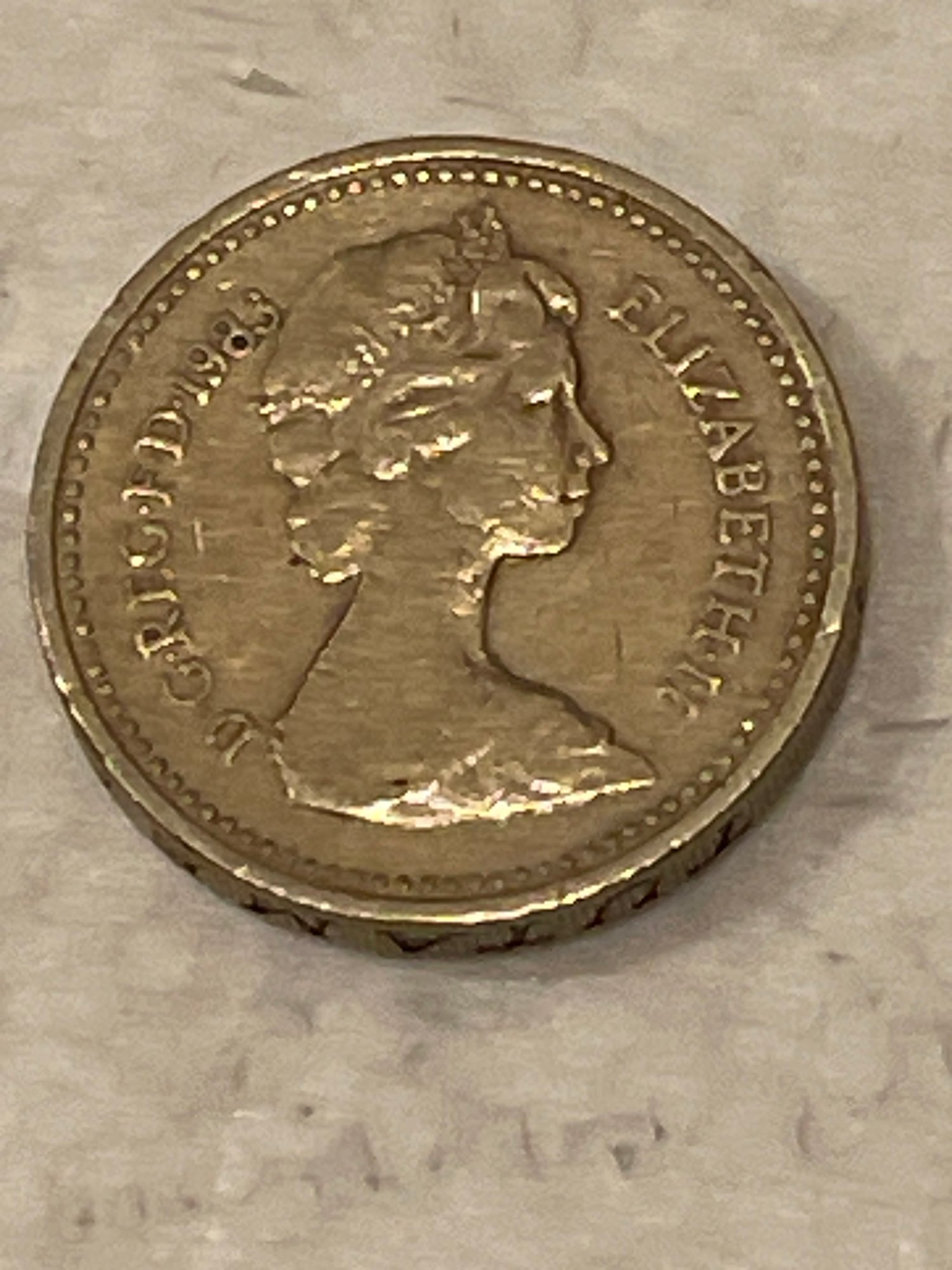 1983 One Pound coin error upside down rim Queen Elizabeth II rare