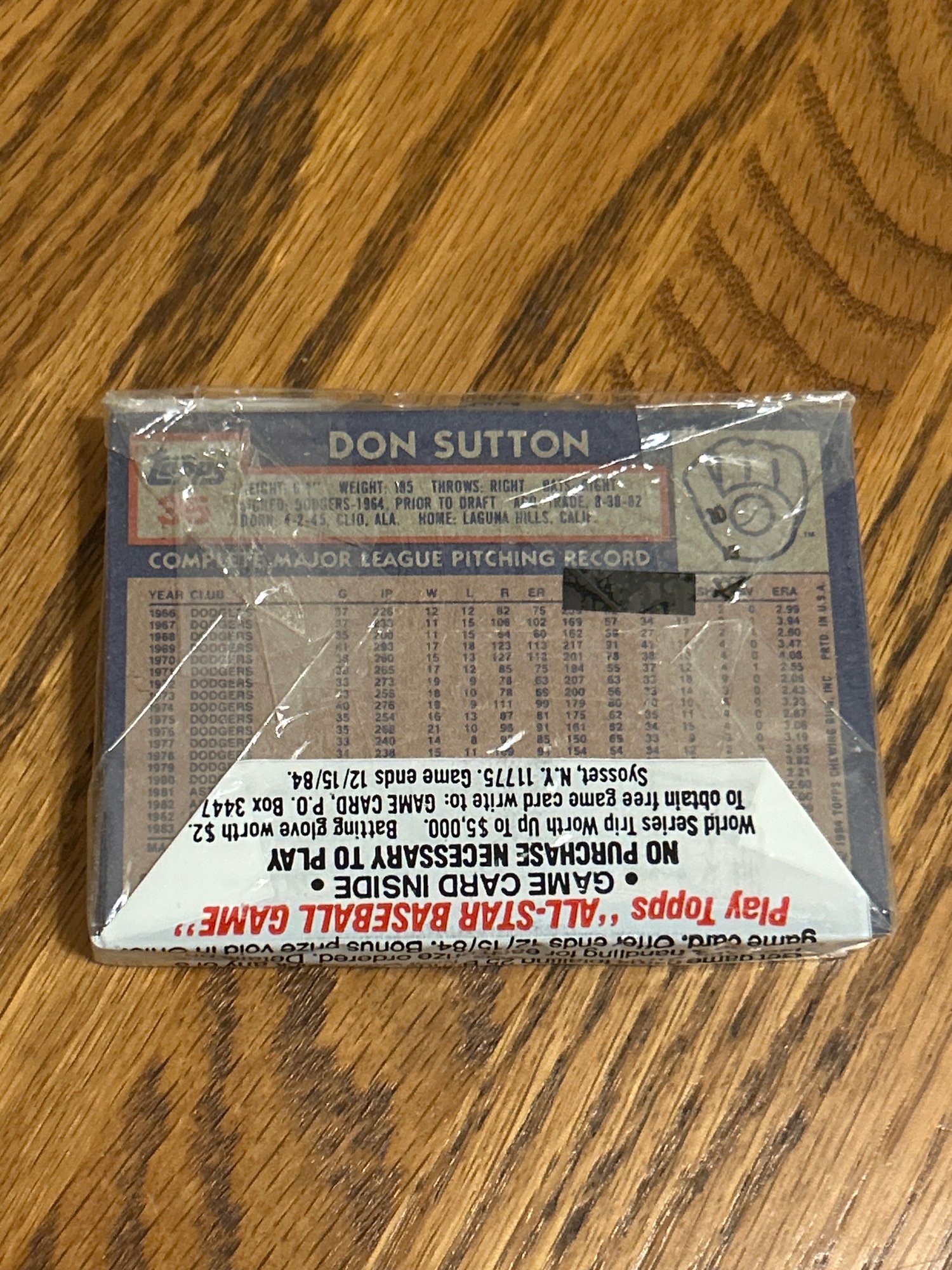 VERY RARE! Unopened 1984 Topps cello pack with HOF legend Eddie Murray showing on top AND HOF Don Sutton showing on bottom!!! 2 Hall of Famers showing!
