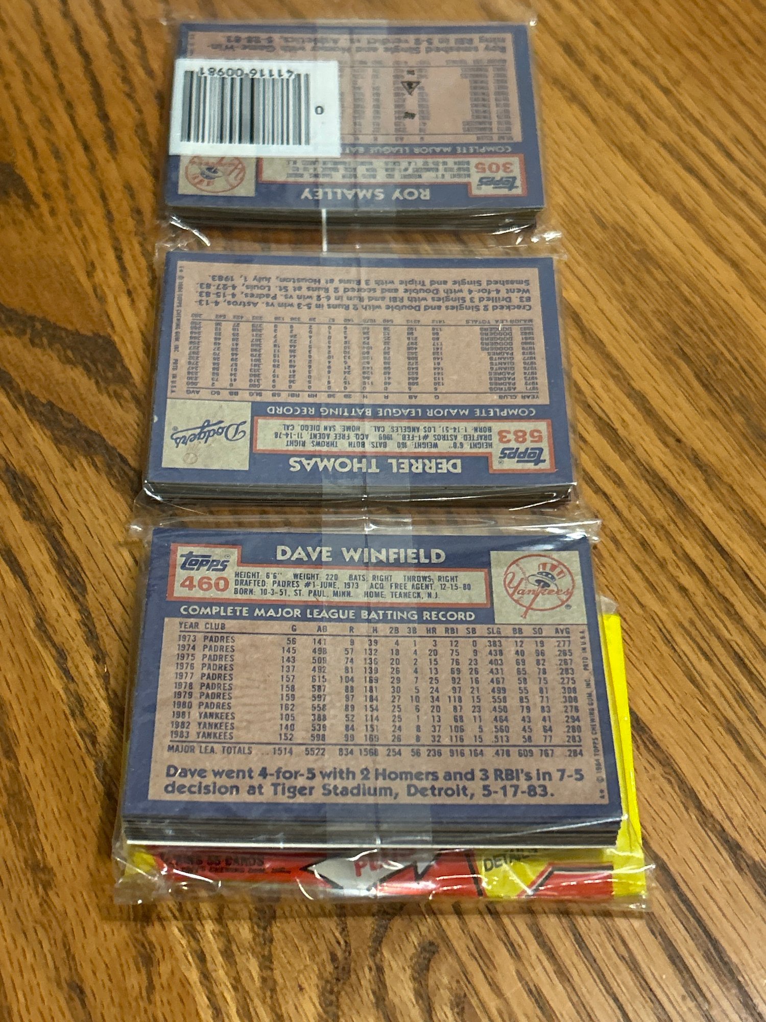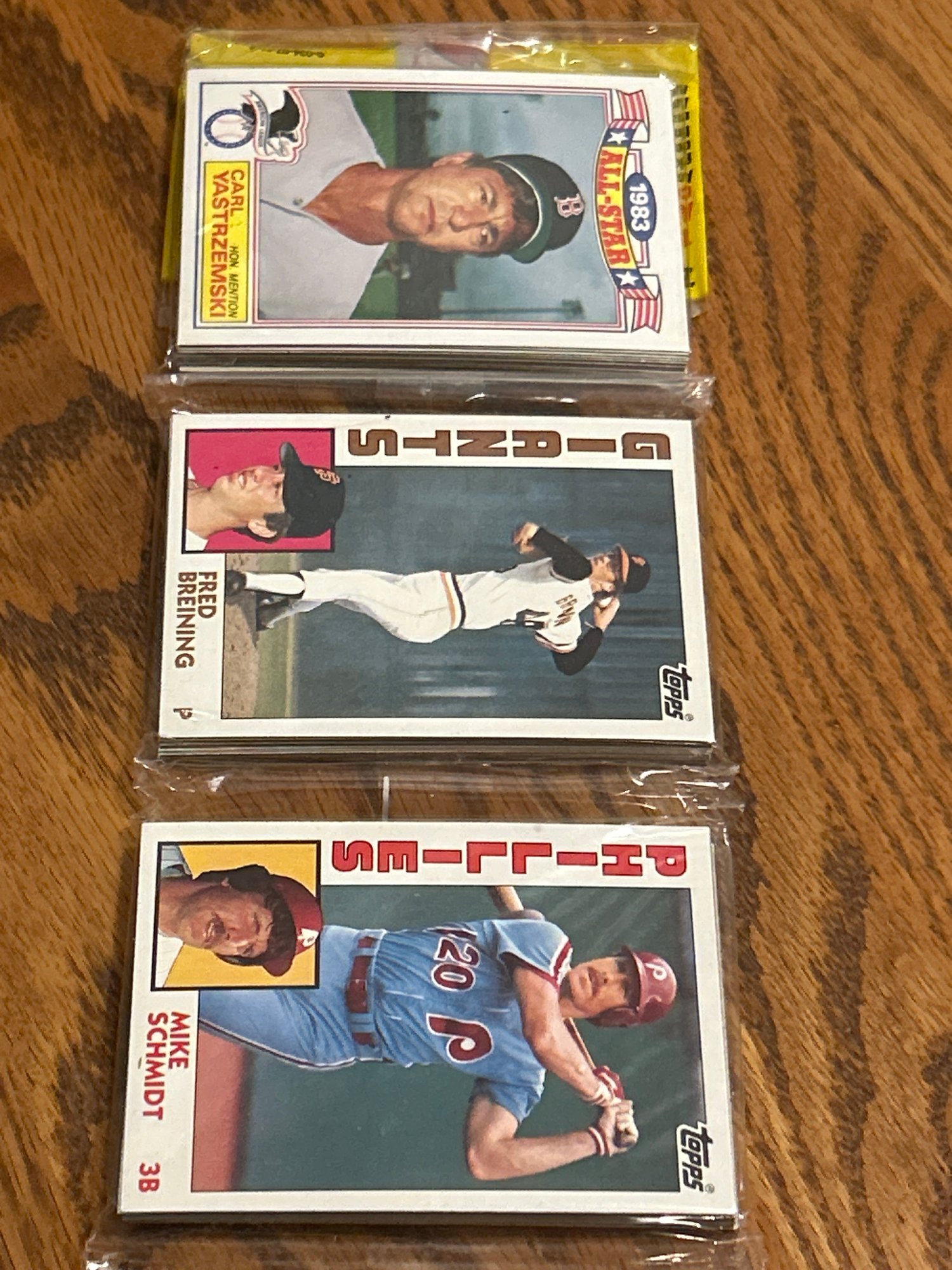 RARE! Unopened 1984 Topps rack pack with HOF legend Mike Schmidt showing on top AND HOF Dave Winfield showing on back! Great investment!