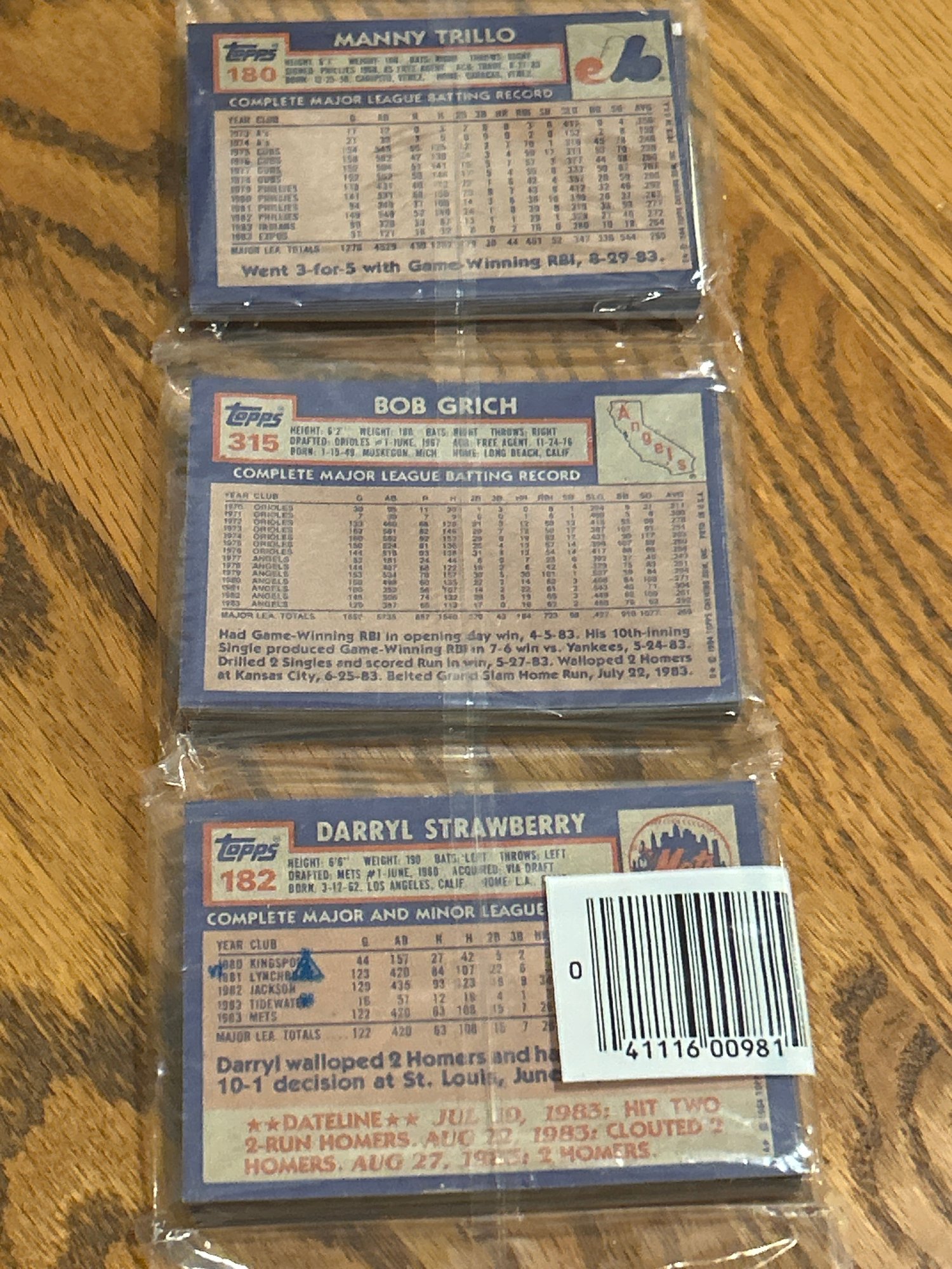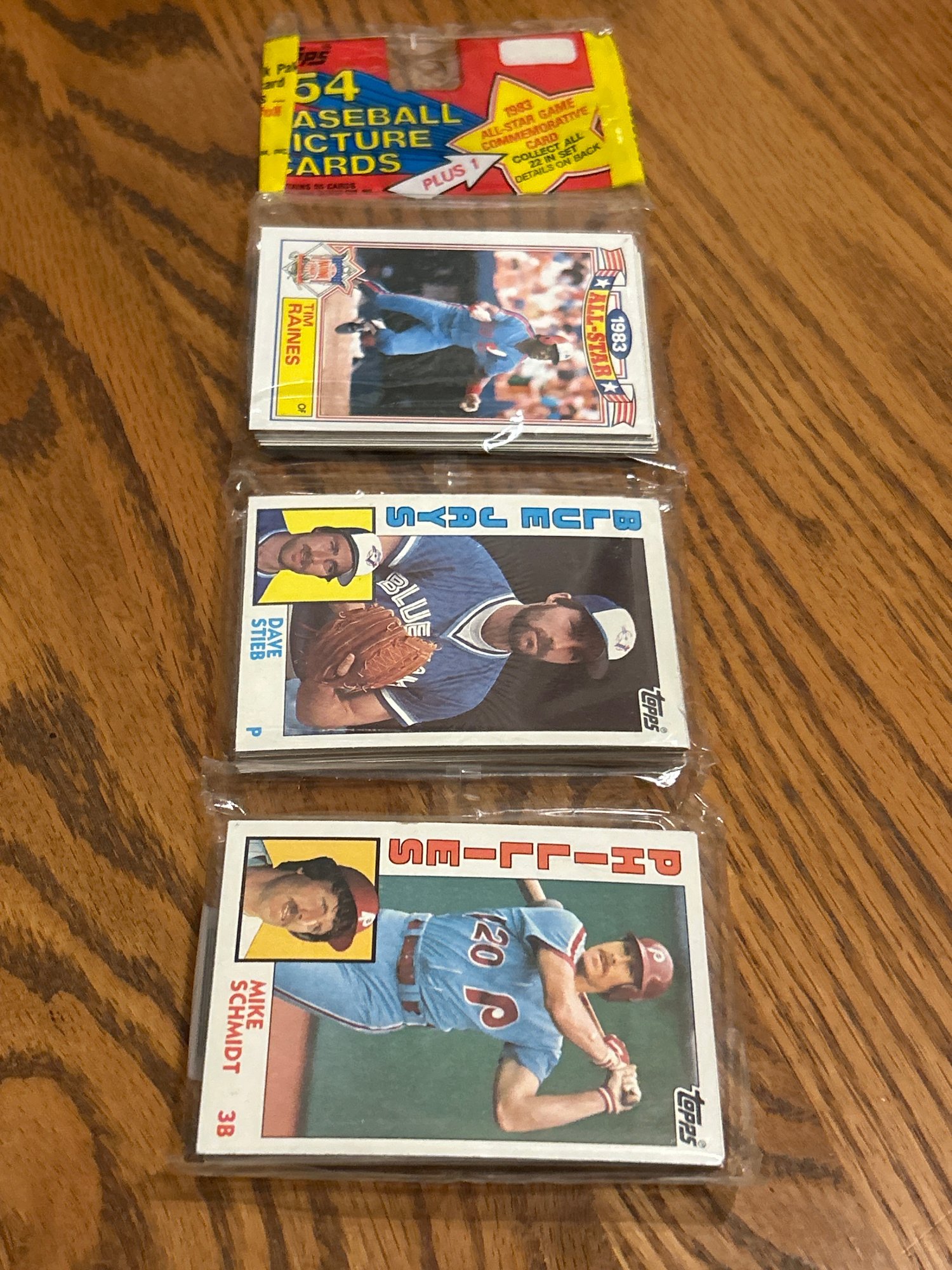 1984 Topps Baseball Rack Pack W Strawberry Rookie AND HOF Mike Schmidt BOTH Showing!