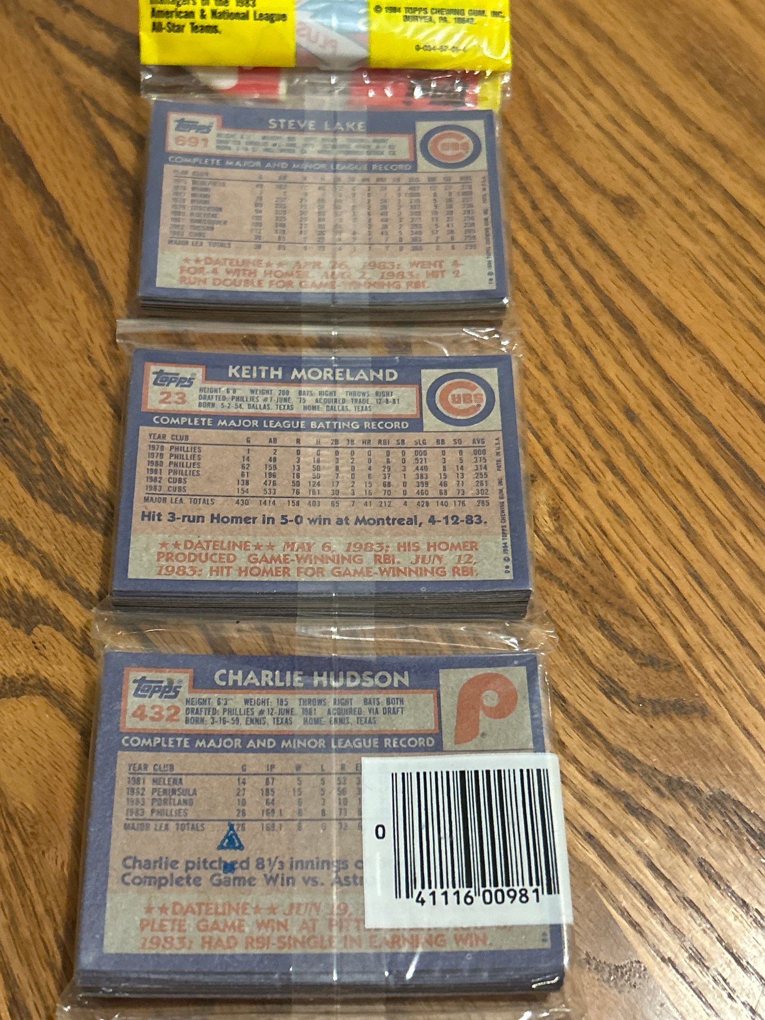 1984 Topps Baseball Rack Pack With Mike Schmidt On Top!