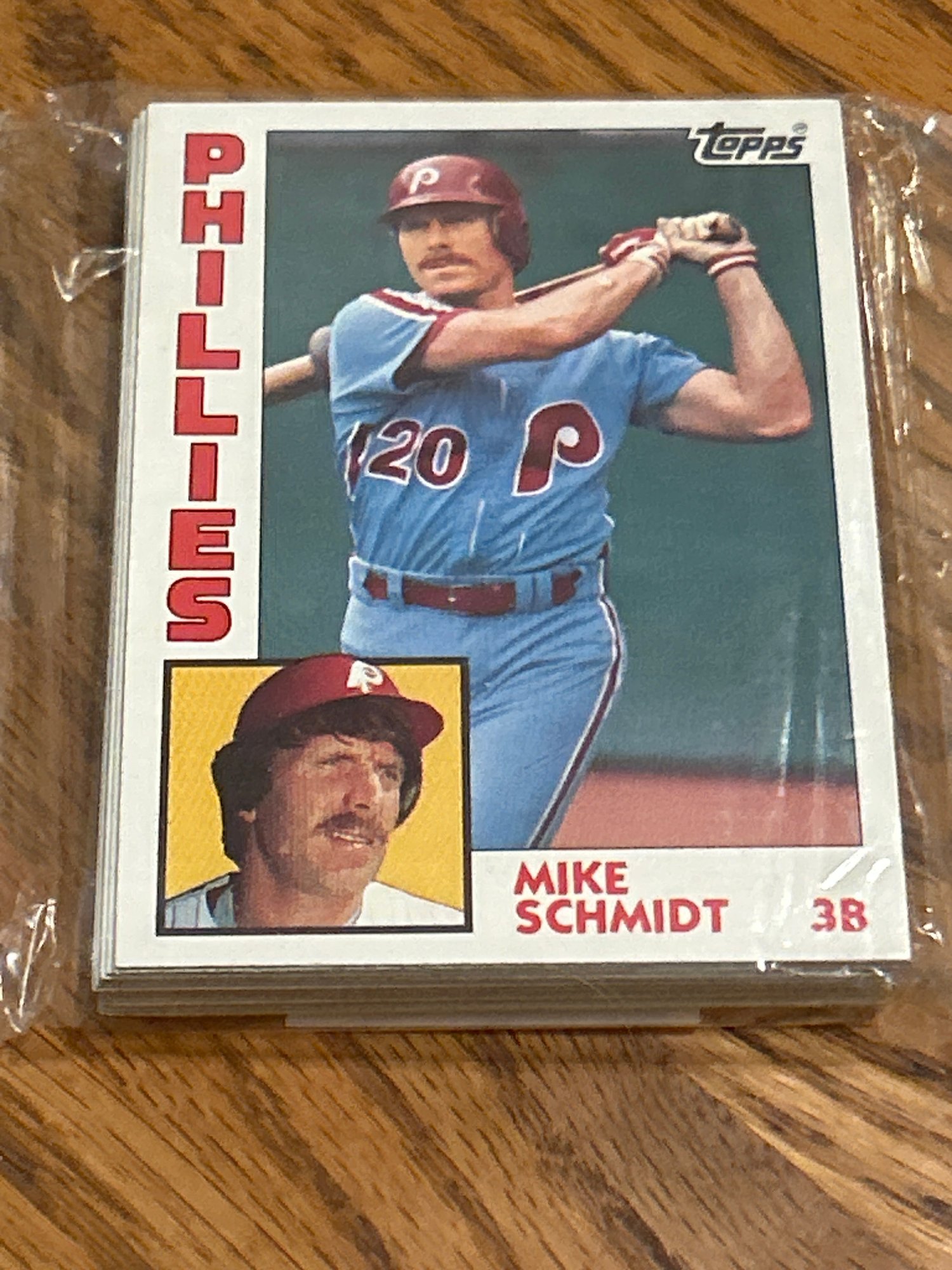 RARE! Unopened 1984 Topps rack pack with HOF legend Mike Schmidt showing on top! Great investment!