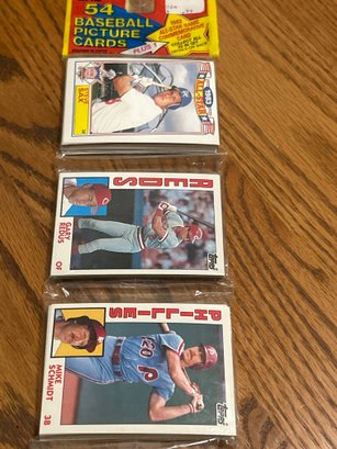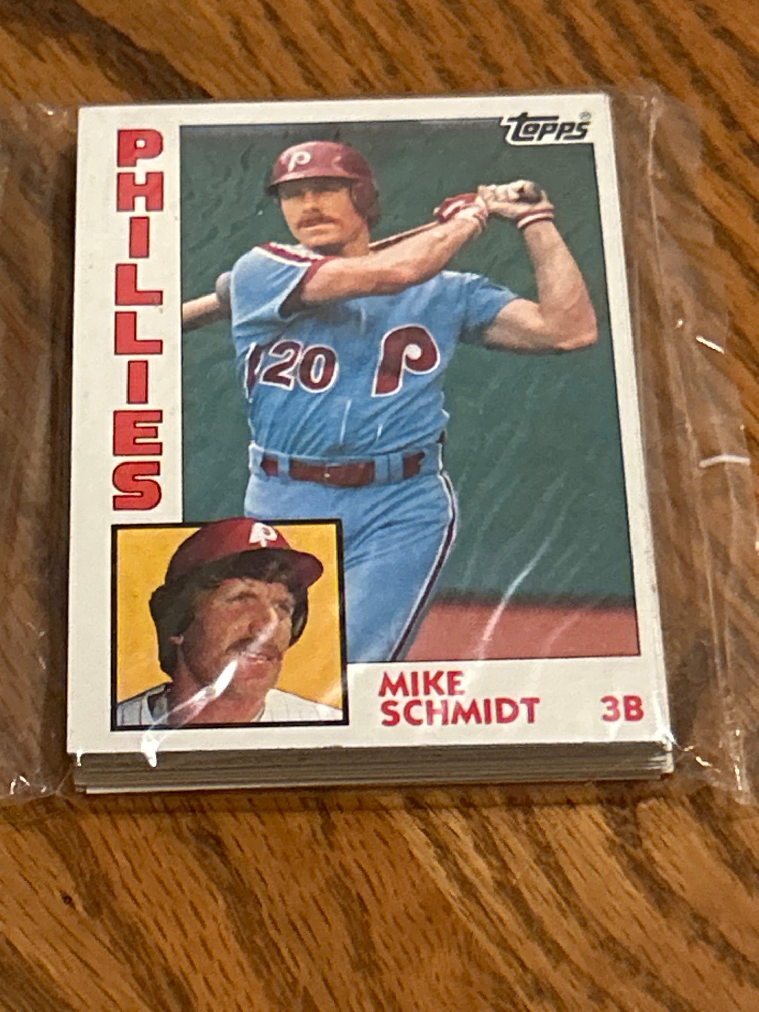 RARE! Unopened 1984 Topps rack pack with HOF legend Mike Schmidt showing on top! Great investment!