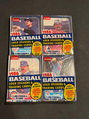 1986 Fleer Cello Baseball Card Pack Lot of 4