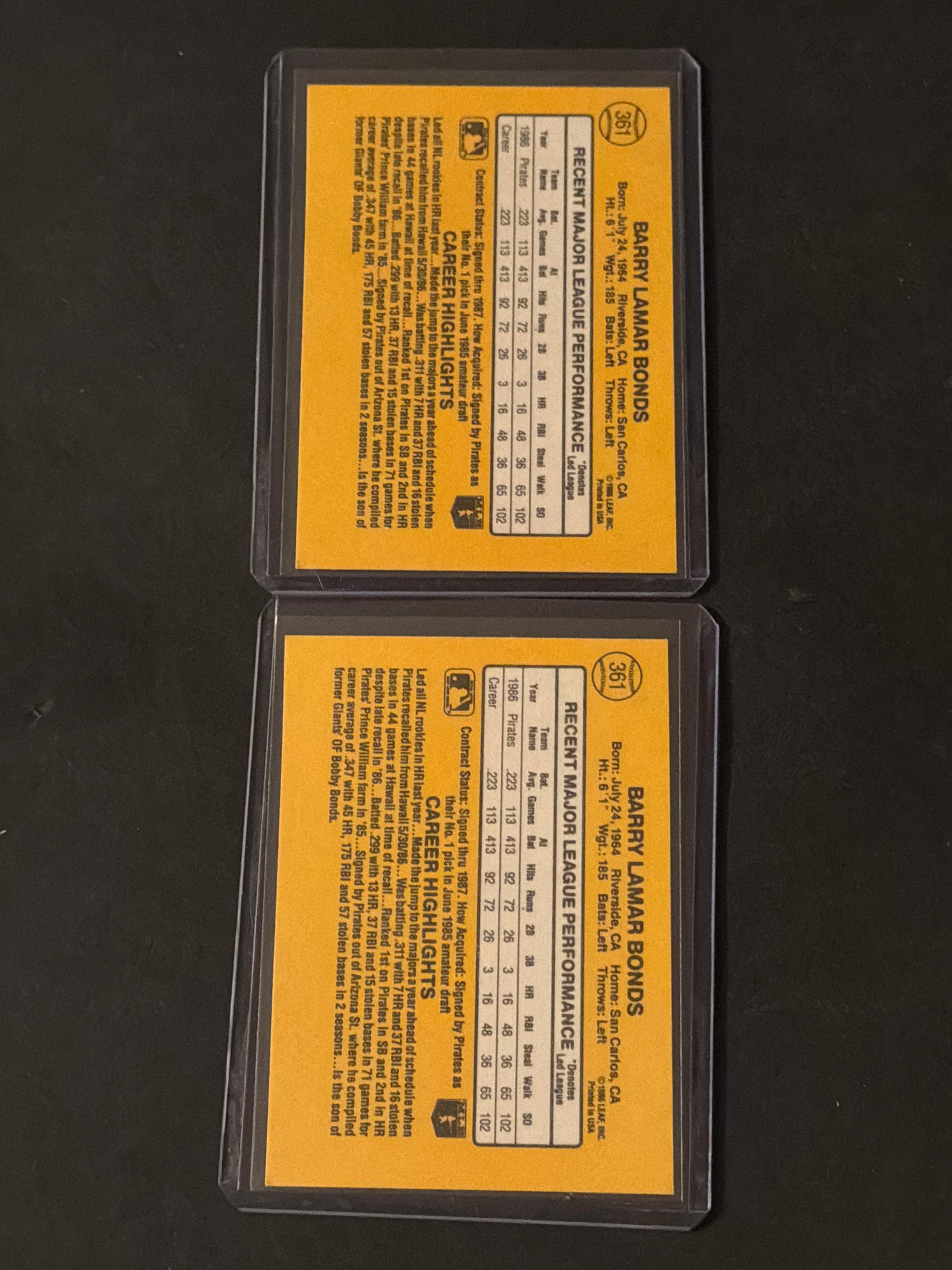 1987 Donruss Baseball Barry Bonds Rookie Lot Of 2