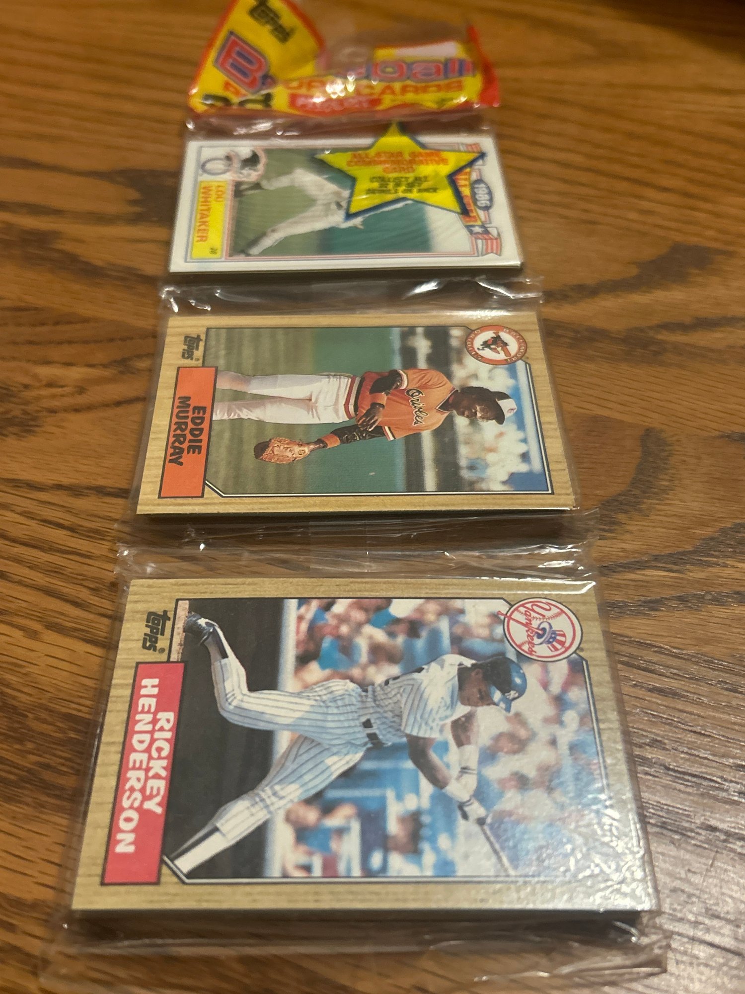 RARE! Incredible rack pack!!! Hall of Famers Rickey Henderson and Eddie Murray both showing on top AND Canseco rookie showing on bottom! Awesome collectible!