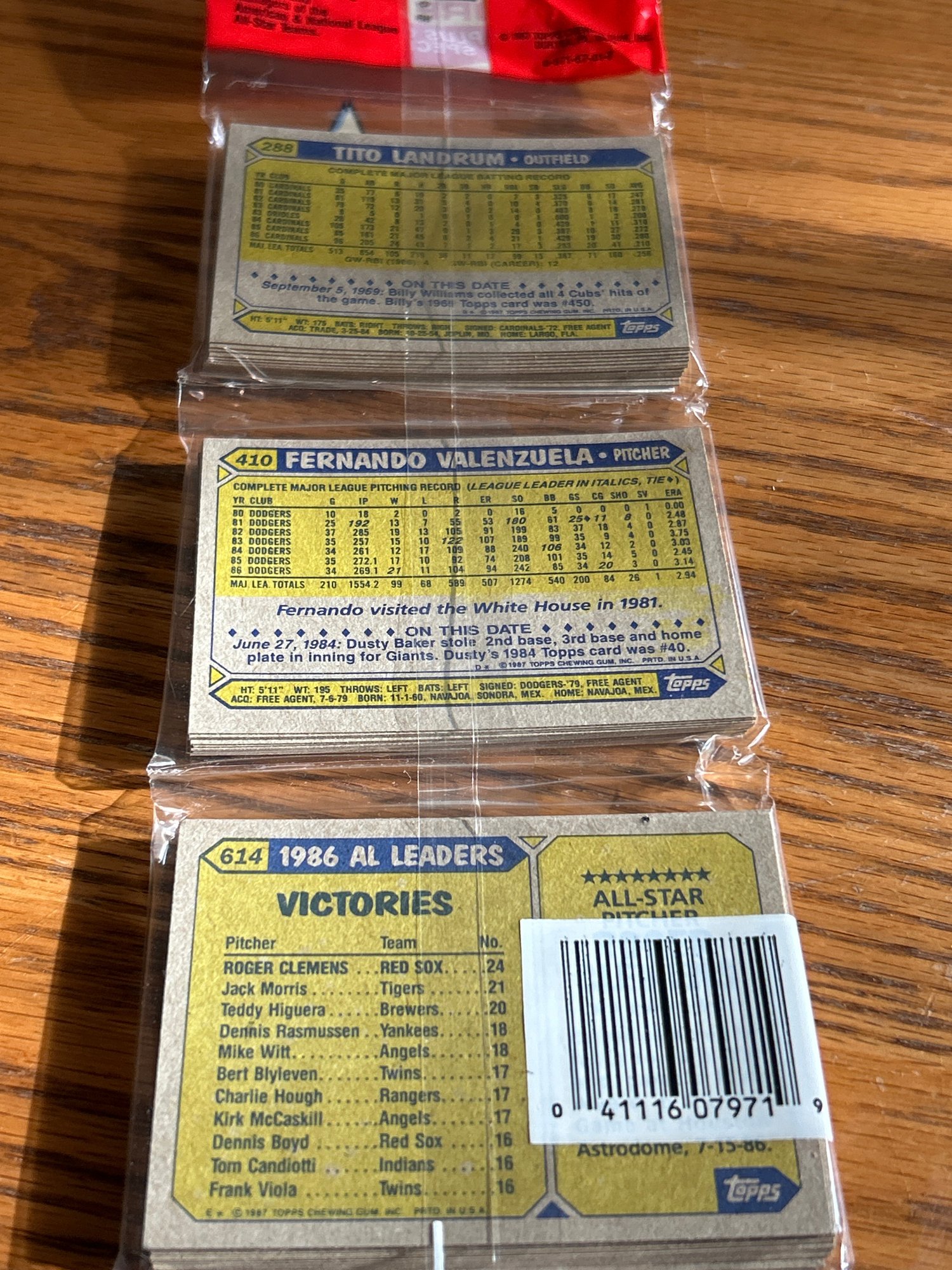 Unopened pack with Fernando Valenzuela AND Roger Clemens both on bottom!