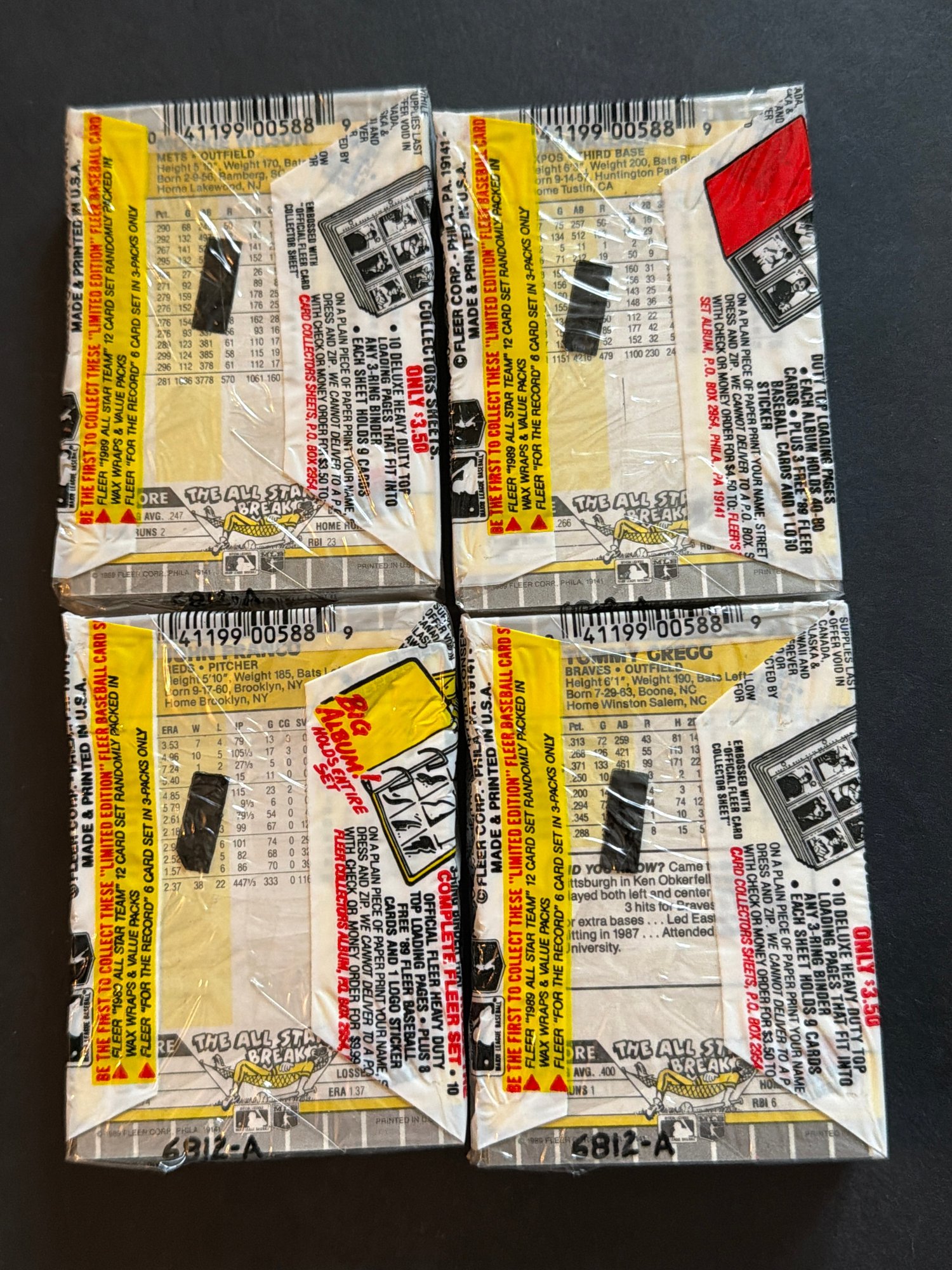 1989 Fleer Baseball Cello Pack Lot Of 4