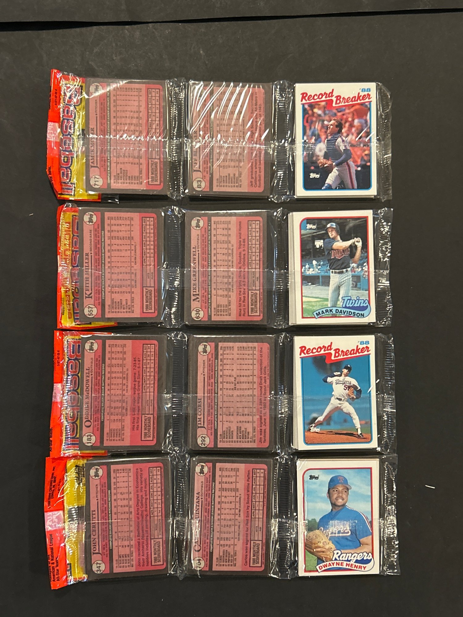 1989 Topps Baseball Rack Pack Lot Of 4. Hall of Famers and stars showing