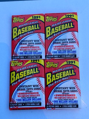 1991 Topps Baseball Unopened Pack Lot Of 4