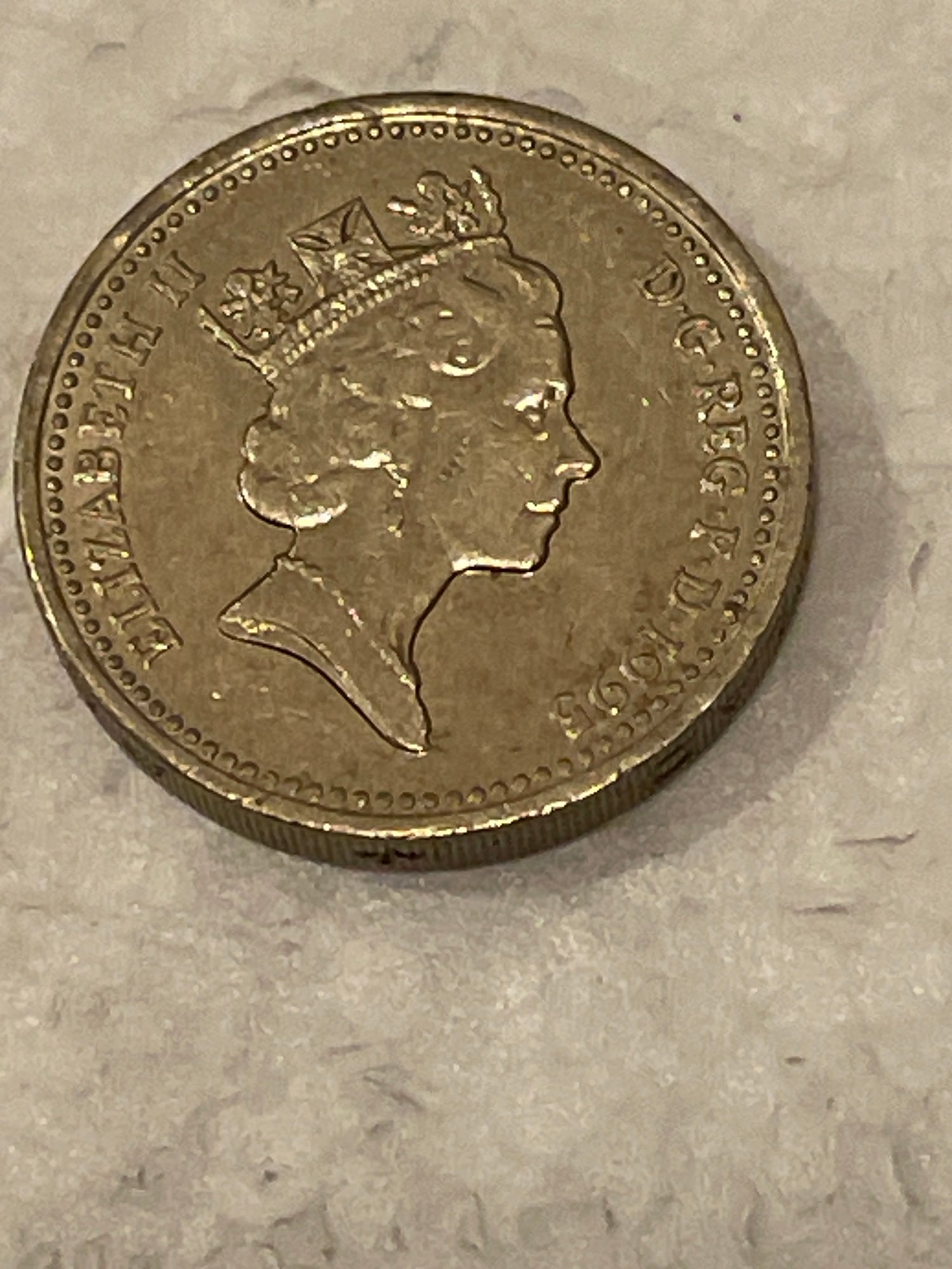 1993 one pound Queen Elizabeth coin Upside down Side Letters