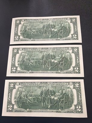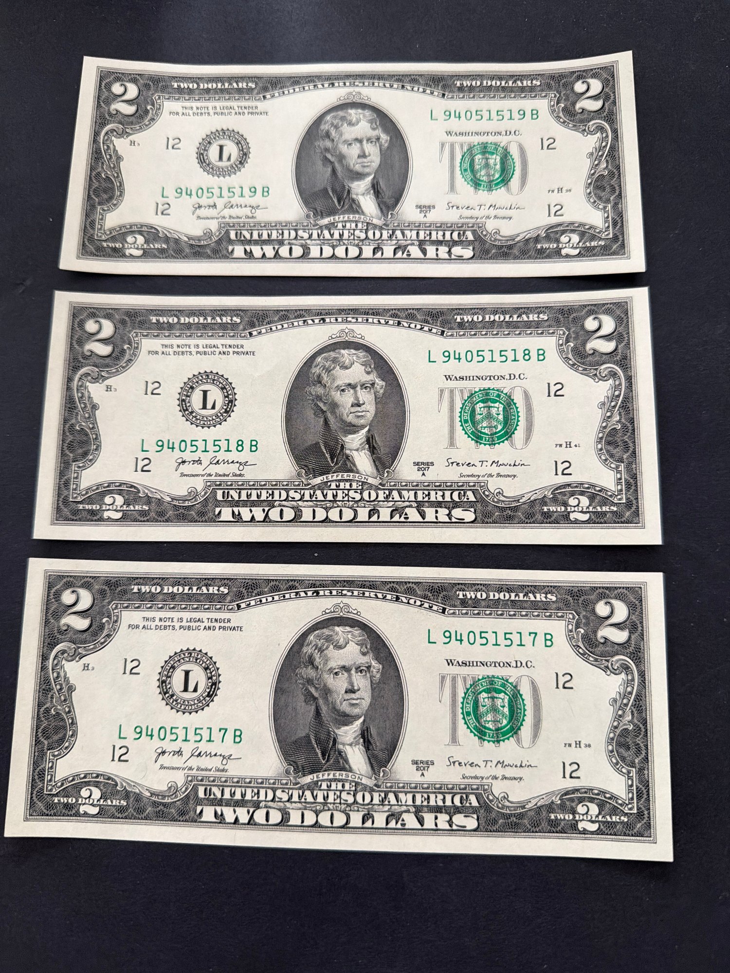 2017 A Two Dollar Bill Uncirculated Sequential Lot Of 3