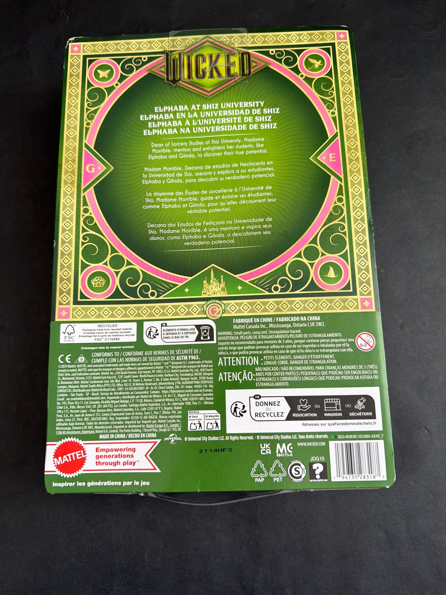 2024 Mattel Wicked Elphaba At Shiz University Fashion Doll URL MISPRINT NEW