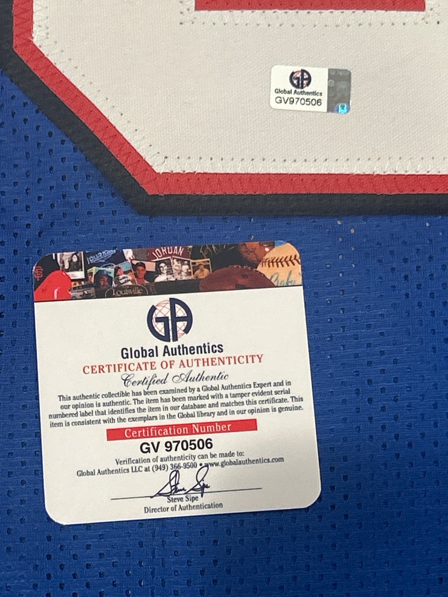 Signature has been certified, but What's In The Box does not recognize Global Authentics as a reputable authentication company. For that reason, we cannot guarantee authentic signature.