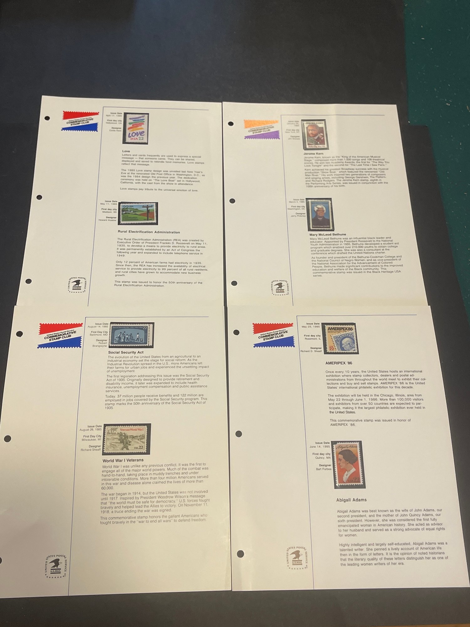 American Commemorative Stamps Pages - Lot Of 4 Assorted